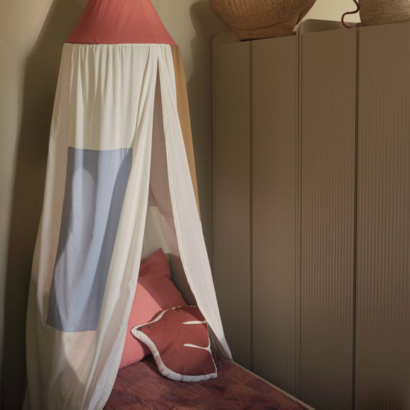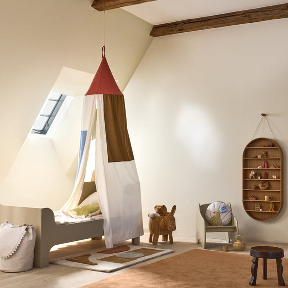 Create a cozy and enchanting retreat for your little one with the Patch Bed Canopy from Ferm Living. Meticulously crafted from GOTS-certified organic cotton, this beautiful canopy is adorned with playful, multi-colored appliqué segments that spark imagination. Whether draped over a bed to create a tranquil space for sleep or suspended in a corner as a magical hideaway for play, its whimsical design encourages vivid storytelling. A fusion of soft textures and imaginative design, it’s perfect for creating cherished moments of creativity and relaxation.