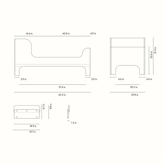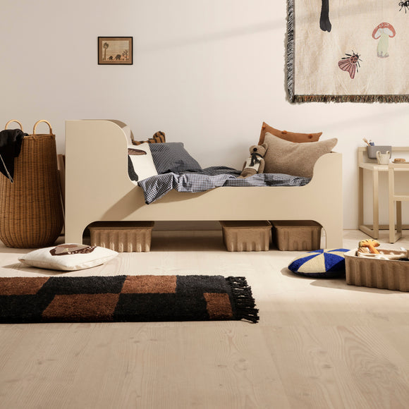 The Sill Junior Bed from Ferm Living, a contemporary take on a timeless children's bed, is a sweet haven for cozy moments and sweet dreams. With a soft, curved design and high headboard and footboard, it offers a comforting space for cuddling up and getting a good night's sleep. Crafted from FSC™ certified MDF, it also comes with a bed guard for added safety.