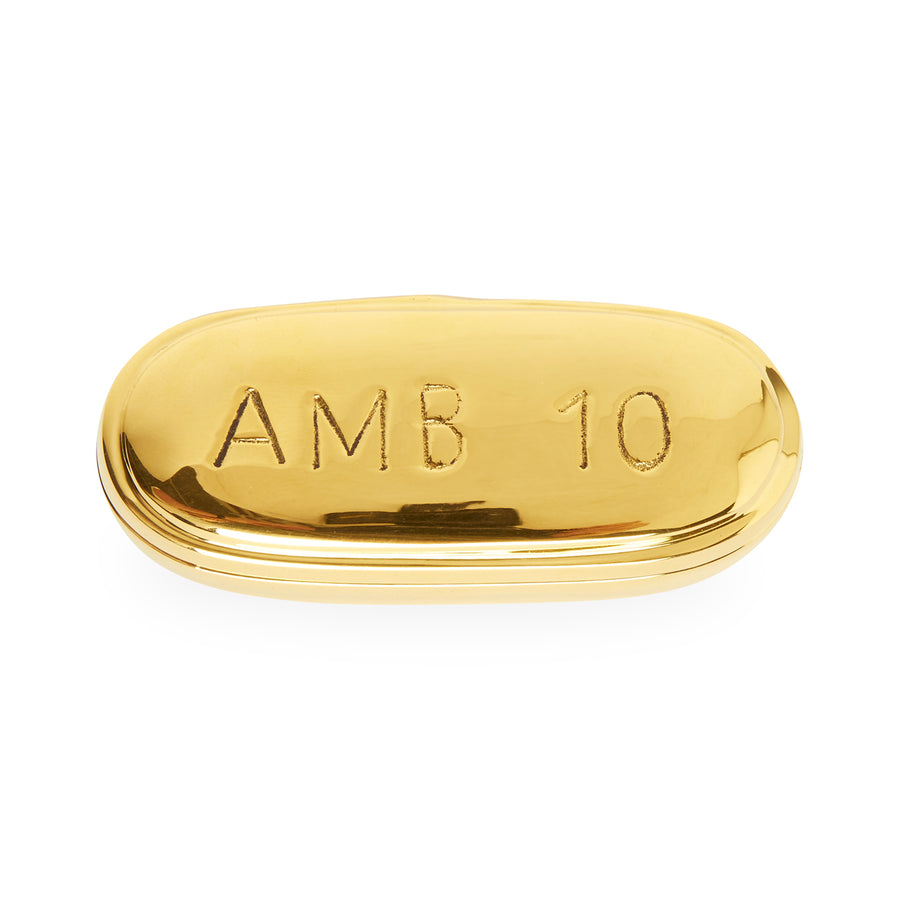 A Dose of Style. We've taken our longtime love of pharmaceuticals to a new level of luxe: cast in solid brass, our hinged pill boxes are just what the decorator ordered—a dose of glamour in warm hand-polished brass or a pop of jewel-like sparkle in shining silver plating. Each box top is laser-etched with an mg prescription. The perfect provocative touch for your tablescape or hip hideaway on your bedside table.
