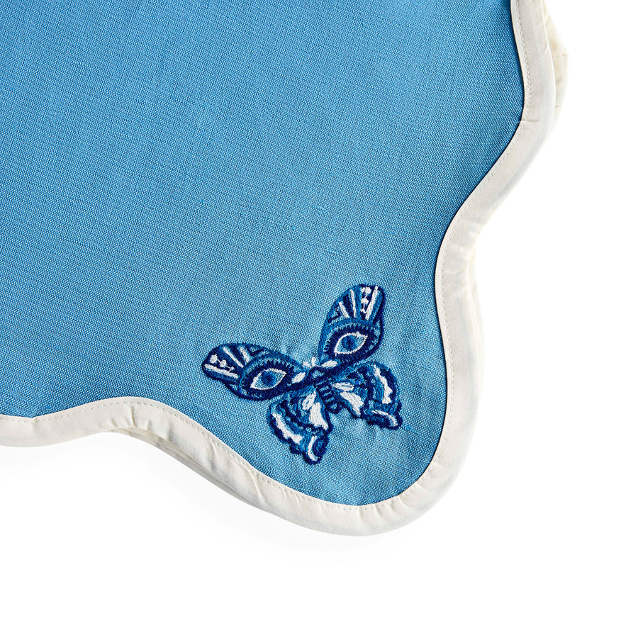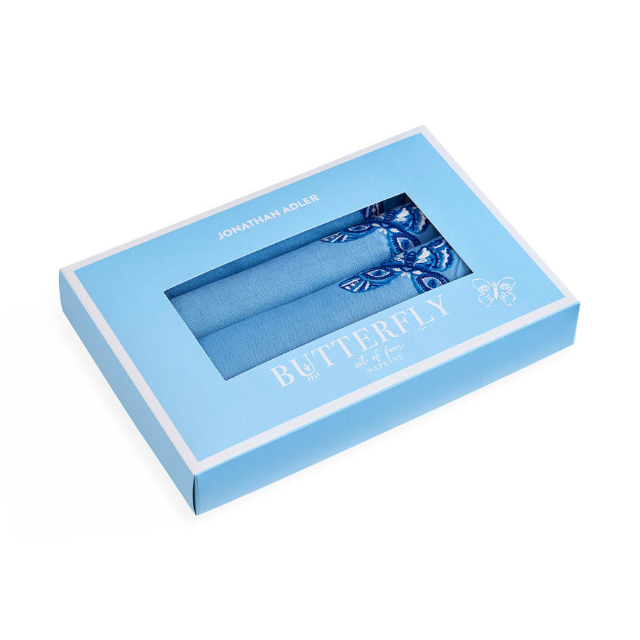Featuring a satin stitch embroidery on luxe linen with a contrast flange for flair, our Butterfly Napkins are a little Halston with a touch of Dalí. Pair with our Constellation placemats and Druggist dinnerware for an extra dreamy tablescape.
