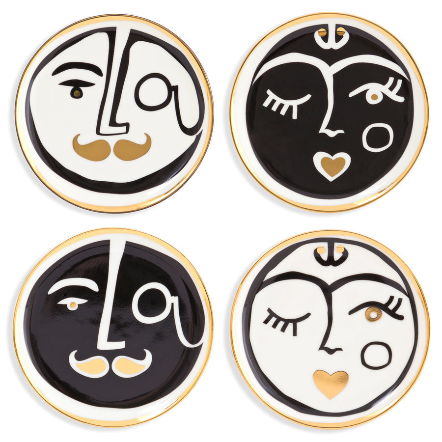 Face It. Curious coasters accented by hand-applied gold accents, perfect for keeping surfaces dry in a stylish way. Our Marseilles design is a black and gold play on French '50 faces. Packaged in a nifty gift box, they make a perfect hostess present (or pick-me-up for yourself).