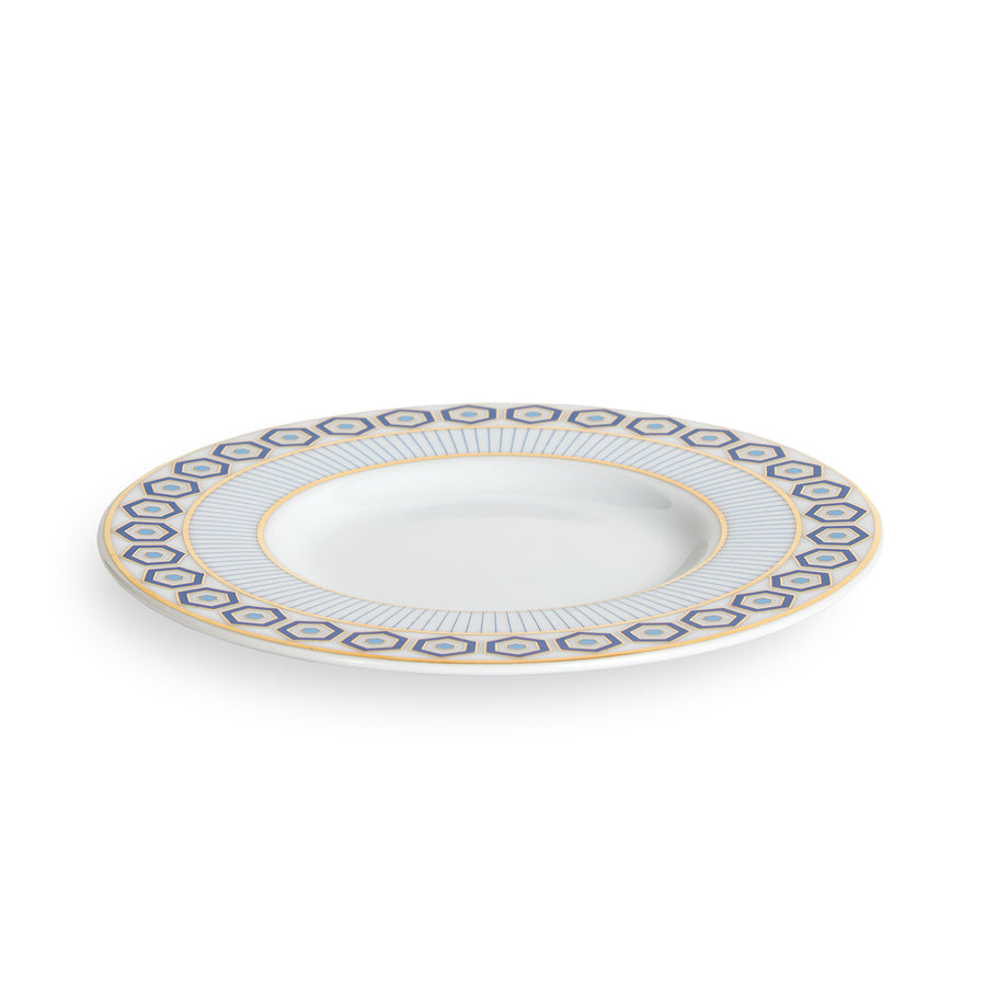 Heavenly Hexagons. Our signature hexagon pattern in cool blue hues with sparkly gold accents. Formal but fresh, our Newport dinner and serveware collection is perfect for everyday, yet polished enough to impress at your poshest dinner party.