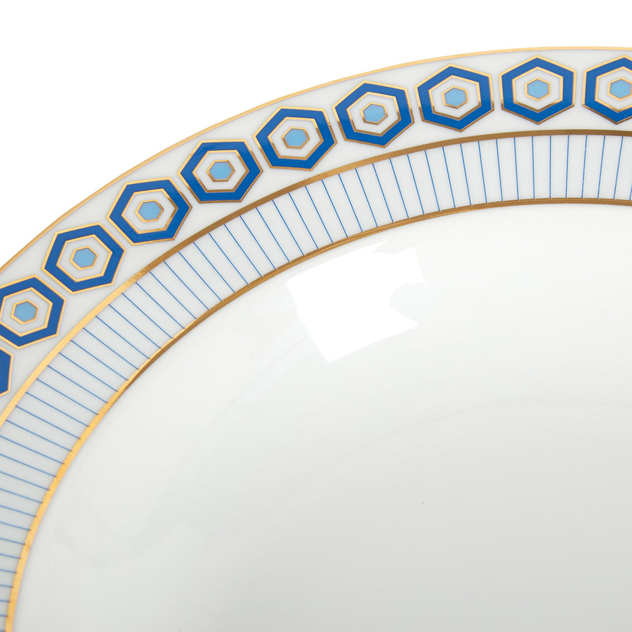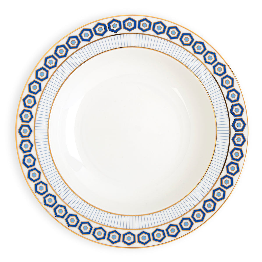 Heavenly Hexagons. Our signature hexagon pattern in cool blue hues with sparkly gold accents makes this soup bowl both formal and fresh—perfect for everyday dining and for impressing at your poshest dinner party.