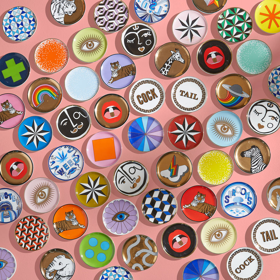 Big Boom. A bold splash of rainbow realness takes our universal sky-cons to another dimension. POP! these playful spots anywhere you want to set your sips. Crafted from high-fired porcelain and finished with shimmery gold luster. Packaged in a nifty gift box, they make a perfect hostess present (or pick-me-up for yourself).