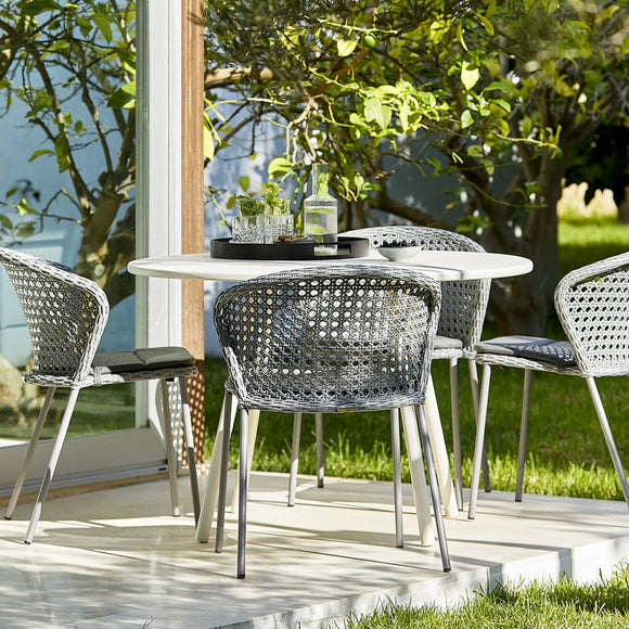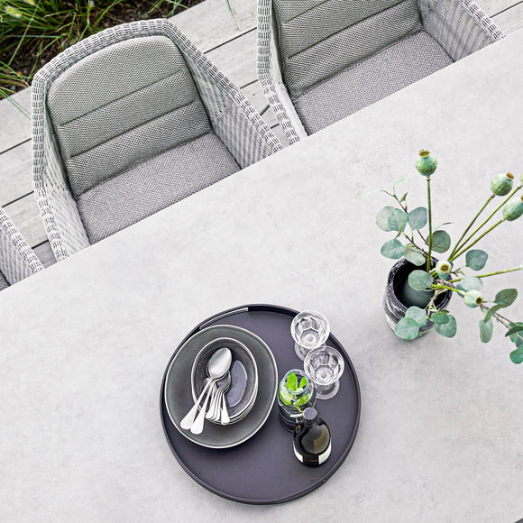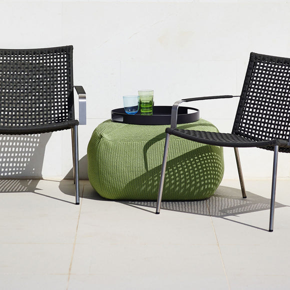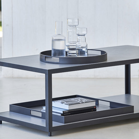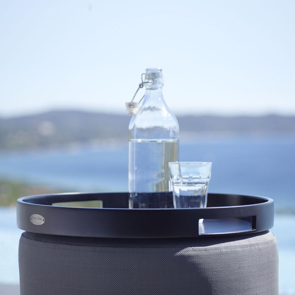 The Club Round Tray from Cane-line is designed for both sophistication and practicality. This tray is made from sturdy aluminum that requires minimal maintenance to withstand outdoor elements. The color of the trays makes them easy to match with existing outdoor decor. The round tray is suitable for use on rest footstools, while the square tray can transform Diamond or Chester footstools into coffee tables.