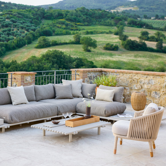 Crafted from durable aluminum, the Club Tray from Cane-Line is a low-maintenance way to elevate your outdoor decor. Choose from a round or square shape to fit your needs - the round tray pairs perfectly with our Rest footstools, while the square option can transform your Diamond or Chester footstools into versatile coffee tables. With its weather-resistant design, the Club Tray can be left outside all year round without worry, making it a smart and stylish addition to any outdoor space.