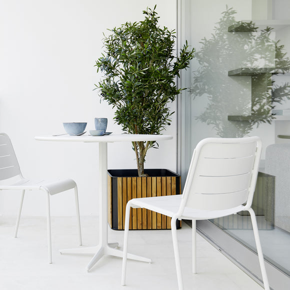 Crafted with a unique blend of teak and powder-coated aluminum, the Combine Square Planter from Cane-Line offers a modern touch to any setting. Its durable aluminum surface resists scratches, making it perfect for herbs, flowers, or small trees. Designed as a part of the Combine Collection, this planter is suitable for outdoor use, ensuring its longevity.