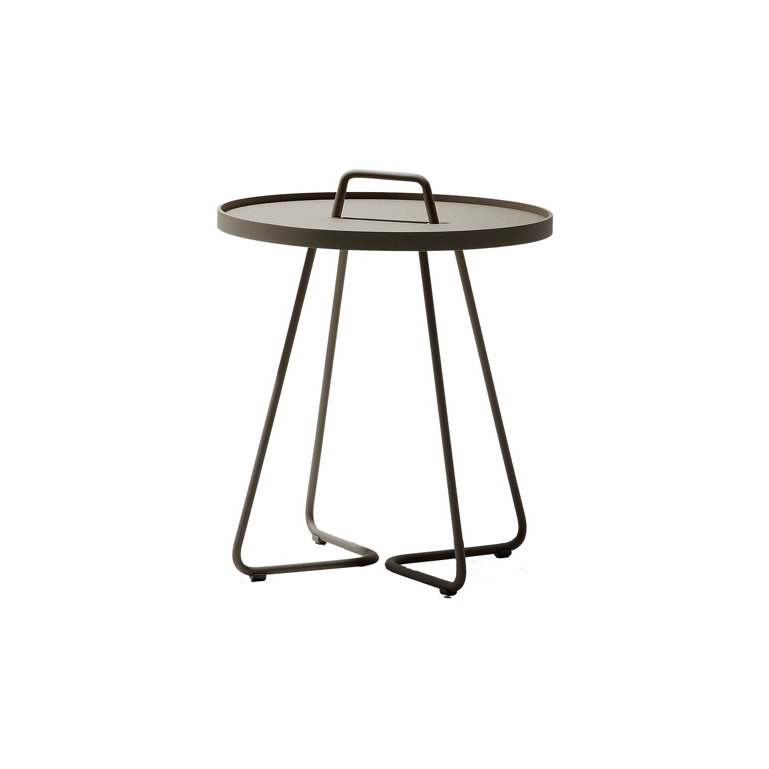 A convenient, lightweight and stylish side table ready to be moved about wherever needed, the On The Move Indoor/Outdoor Side Table from Cane-Line is both elegant and practical. Outfitted with an easy-to-grab handle which makes movement effortless, the removable tray converts the table from a functional side piece to a handy serving tray in no time.