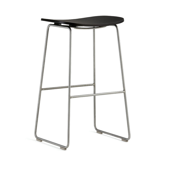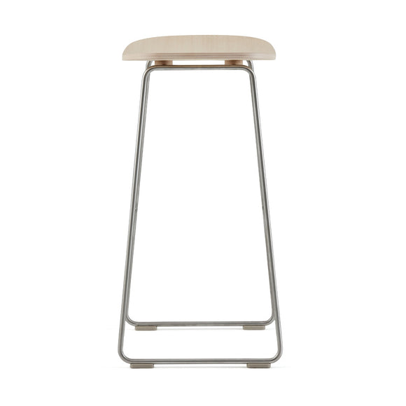 Upgrade your seating potential with the Morrison Wood Stool from Cappellini. Available in three heights, its sleek design and ergonomic seat offers comfort and contemporary style. Choose ash wood with bleached or black-stained finish and a stainless steel base in satined or matte-lacquered black for a versatile addition to any home or restaurant setting.