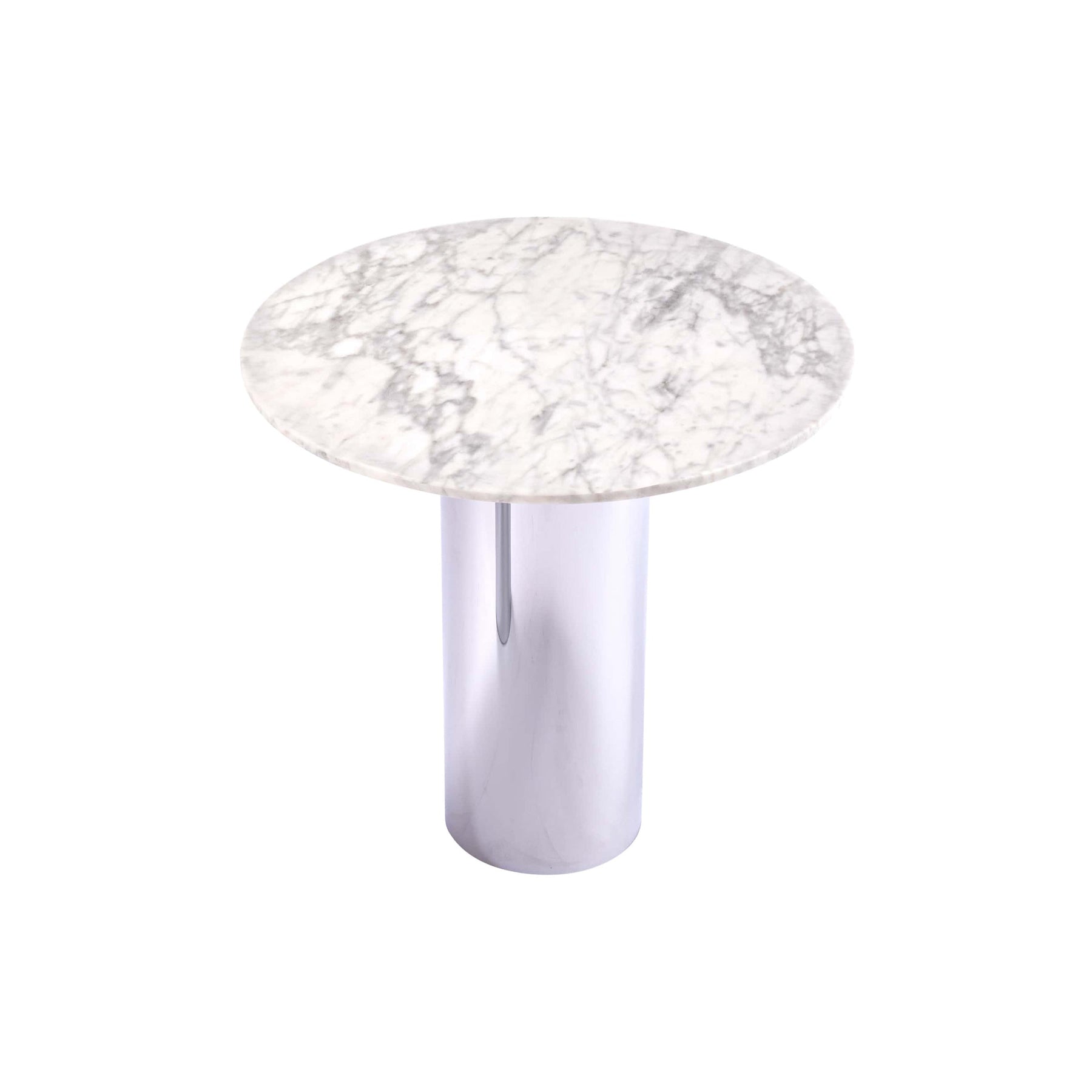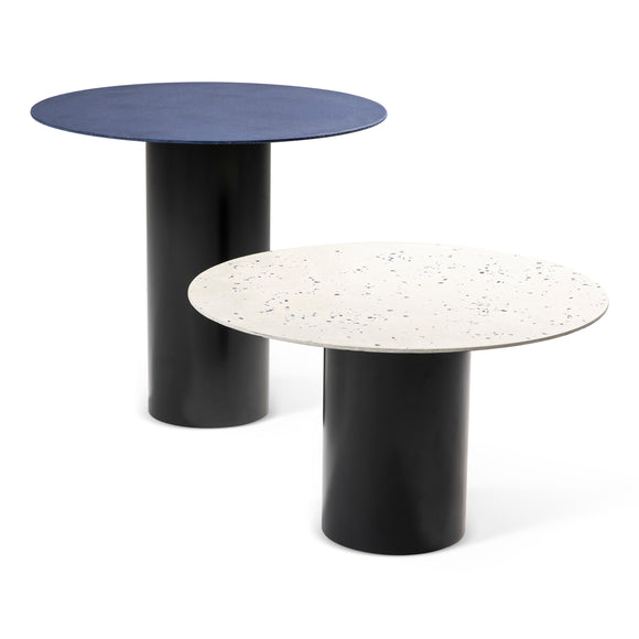 Add a playful touch to your living space with Mush Side Table by Giulio Cappellini. The sturdy cylindrical base contrasts perfectly with the delicate circular top. Choose from two heights and either solid oak or handcrafted marble for a striking living room accent. Make a statement with blue marble and aluminum fragments or opt for a classic white with blue marble fragments.