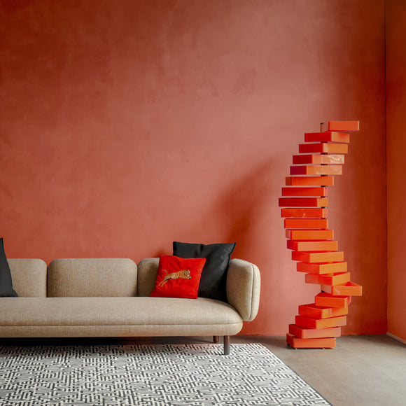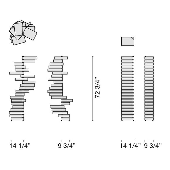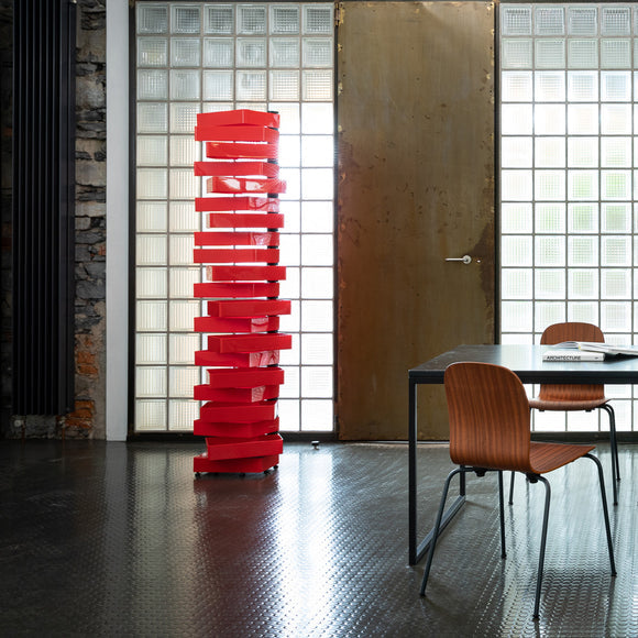 The Revolving Cabinet from Cappellini adds playful style and efficient storage to any living space. Its elegant and abstract design, inspired by mobile sculpture, is a perfect blend of form and function. The glossy plastic drawers can be easily pivoted to reveal or conceal items, while the vertical metal stand adds stability and a touch of modern Italian design. A must-have for those seeking a unique and stylish storage solution.