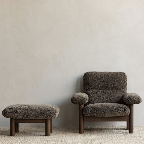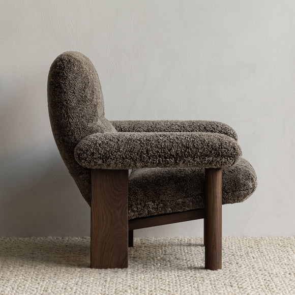 Brasilia Sheepskin Lounge Chair Chairs Audo Copenhagen Sheepskin Root Dark Stained Oak Tall: 32.3 in height
