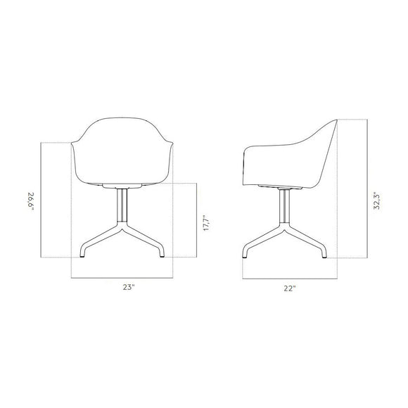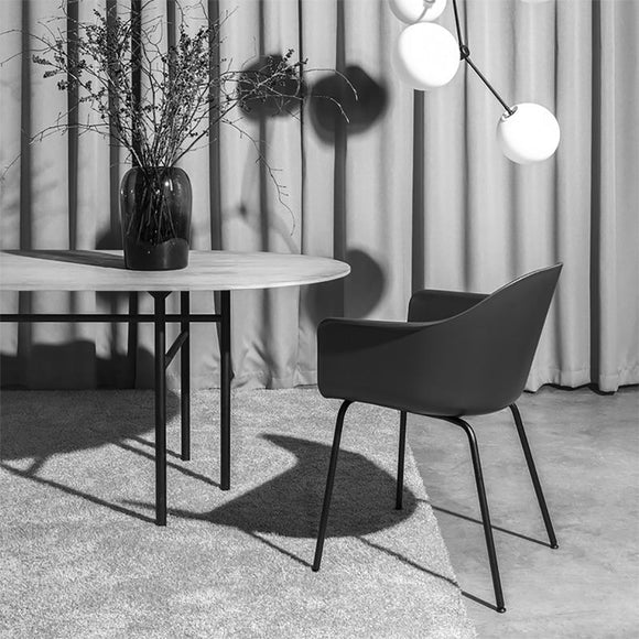 Purposefully designed for comfort and versatility, the Harbour Dining Chair by Menu Design now Audo Copenhagen is a sculptural seat that elevates a variety of interior spaces. The ideal seat for anything from dining rooms, offices, or in a hospitality space, this dining chair strikes the perfect balance between geometry and organic shapes, with the armrests bent outwards for maximum support. This provides comfort and an elegantly slim silhouette that will appeal to any discerning design aficionado. With a solid steel base and polypropylene blended with fiberglass seat, this spacious chair is ready to bring shapely elegance to any room in your home.