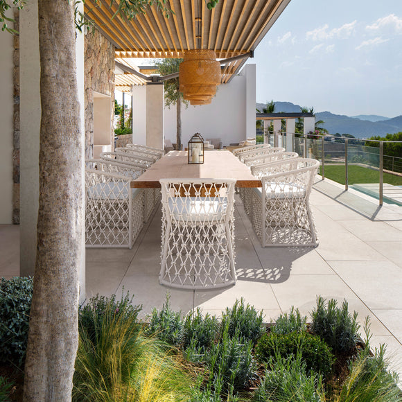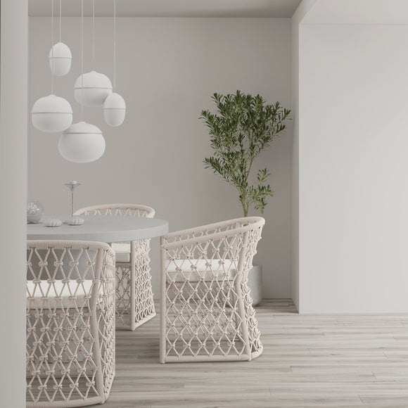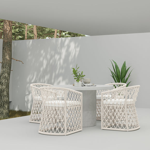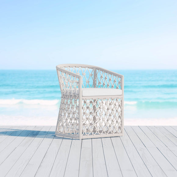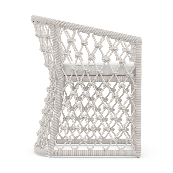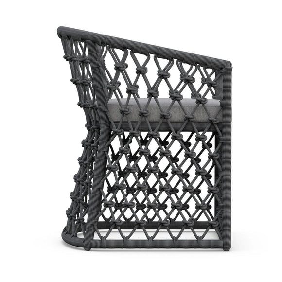 Infused in elegance with focused attention to comfort and style, The Amelia Dining Chair by Azzurro Living makes a statement in any entertainment space. The breezy character is accentuated through a distinctive hand-knotted rope pattern that couples soft curves and precise angles. Crisp lines of the Solvita Performance Fabric refine the design making it suitable for outdoors or in.