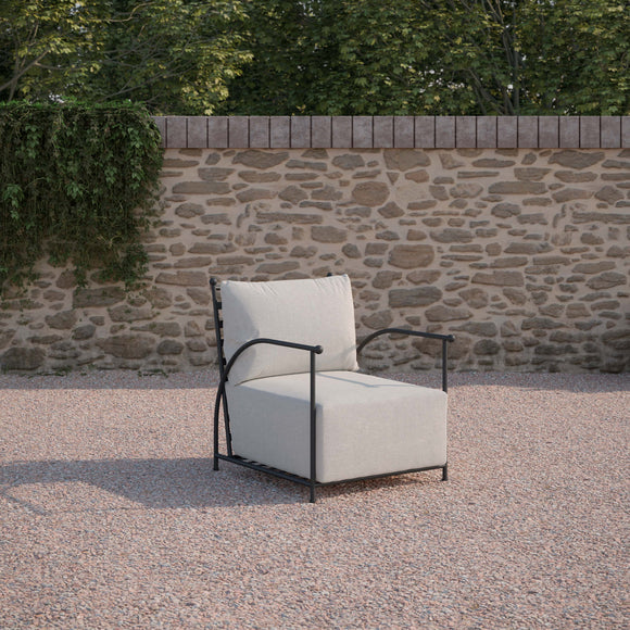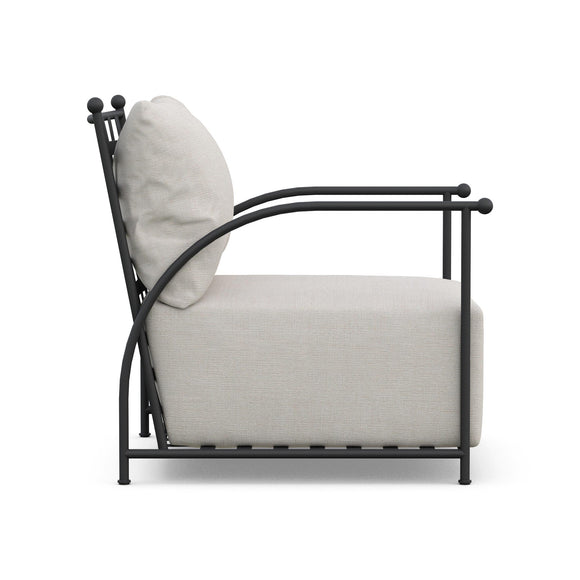 The Athens High Back Club Chair from Azzurro Living masterfully blends European-inspired elegance with timeless design. Featuring sculpted wrought iron accents, refined finials, and intricate detailing, this form-fitting chair offers exceptional comfort with soft, durable performance fabric. It embodies a sophisticated cottage chic aesthetic that harmoniously unites classic refinement with modern simplicity.