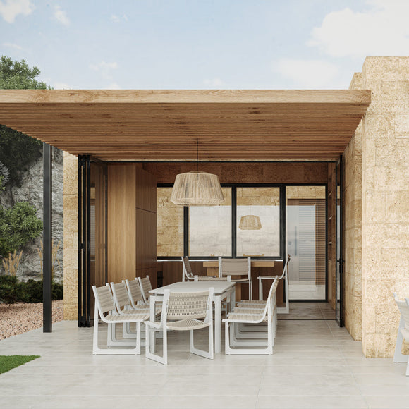 The Cozumel Dining Chair (Set of 2) from Azzurro Living features gentle curves and intricate craftsmanship, combining all-weather textilene rope knotted around a sturdy aluminum frame. Designed to withstand the elements, UV exposure, and heavy use, these chairs offer elegant, zero-maintenance comfort. Perfect for sophisticated outdoor dining, they blend durability with refined style for lasting al fresco enjoyment.