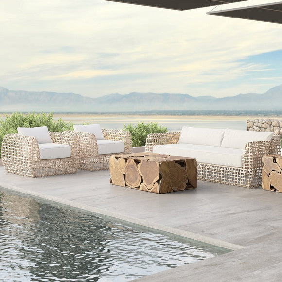 Inspired by nature, crafted to fit in a modern living space, the Kiawah Club Chair from Azzurro Living is an upscale take on a classic design. With a generously sized frame, this club chair is handwoven in traditional rattan style utilizing all-weather wicker to take on the elements and offer lasting durability. Topped with Solvita Performance Fabric upholstery, the high-density foam cushions offer superior comfort and are resistant to stains and fading from years of sunlight exposure.