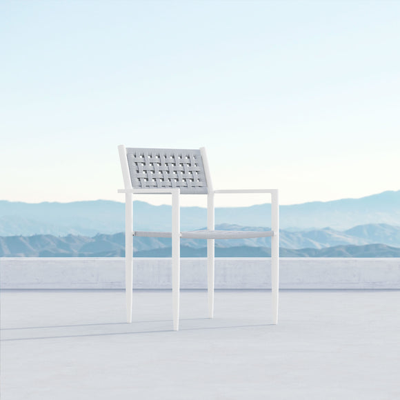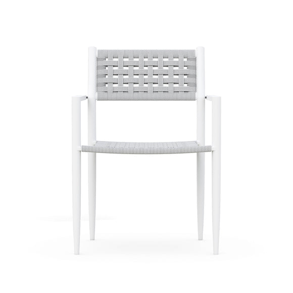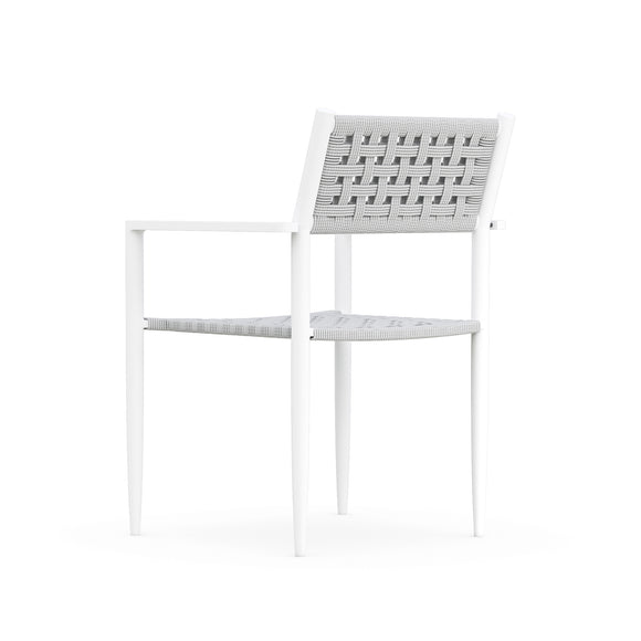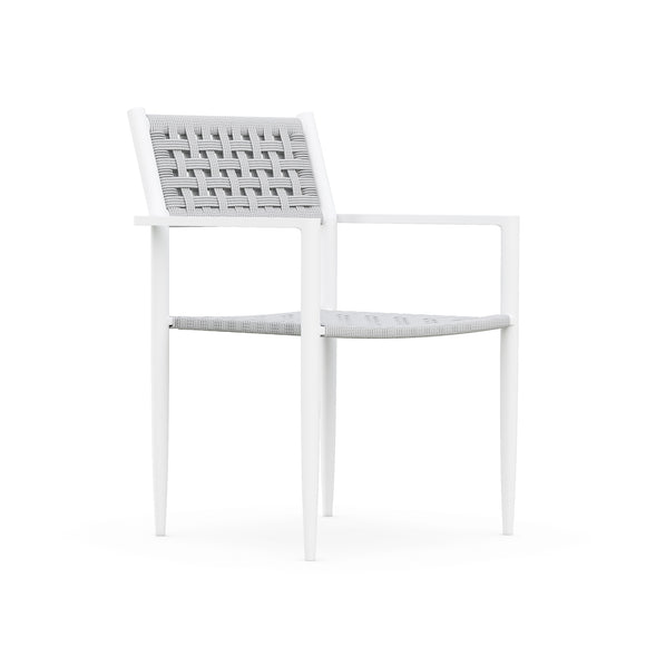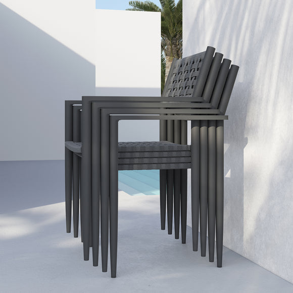Bringing an air of sophistication and function, the Naples Dining Chair (Set of 4) offers a seating solution like no other. The powder-coated aluminum frame is lovingly hand-wrapped with durable all-weather rope by artisans, providing an elevated and unique touch to a traditional outdoor furniture design. The tapered legs make a subtle statement and offer a stackable design ready to be easily stored away when the weather just isn't right for enjoying an evening al fresco. Versatile, yet impactful, this set of dining chairs is ready to be paired with a gorgeous outdoor dining table and topped with your favorite outdoor cushions to provide a comfortable and functional outdoor dining area for guests and family alike.