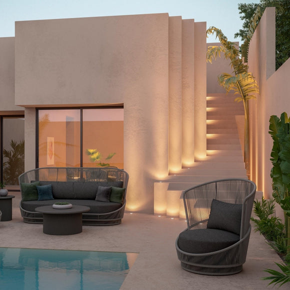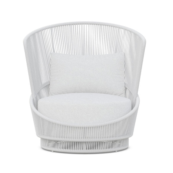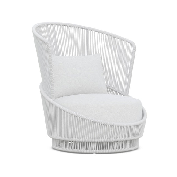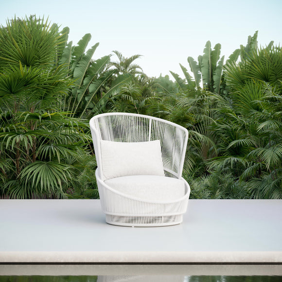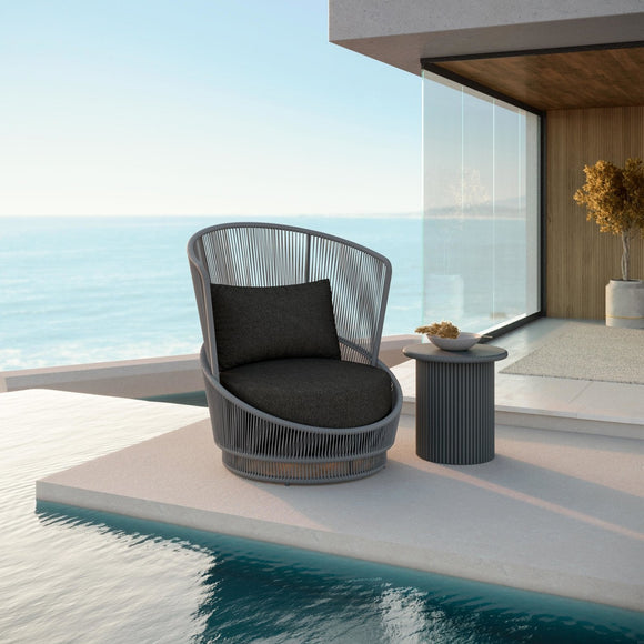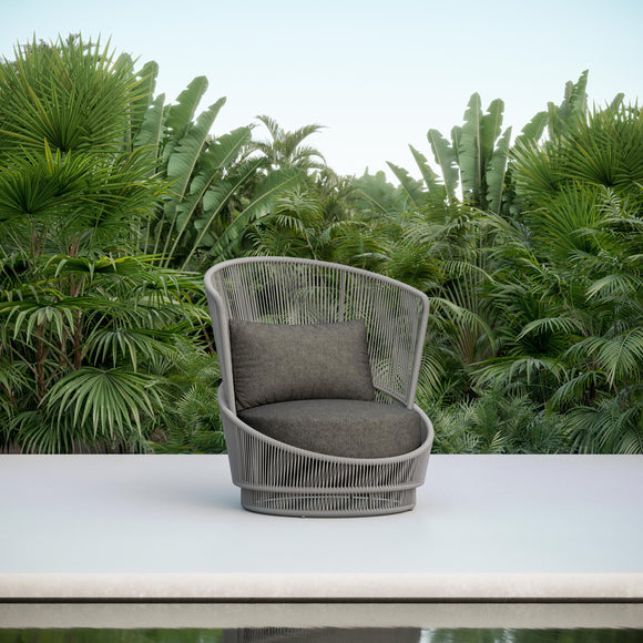 The Palma Swivel Club Chair by Azzurro Living is the definition of coastal modern. Featuring a sweeping profile paired with an innovatively luxuriant, all-weather, textelene rope. A striking curved back keeps things relaxed while soft and boldly proportioned cushions are covered in a chenille performance fabric that’s designed and engineered to withstand the harshest elements. The Palma collection is an expression of true craftsmanship and style, pushing outdoor furniture design to new heights.