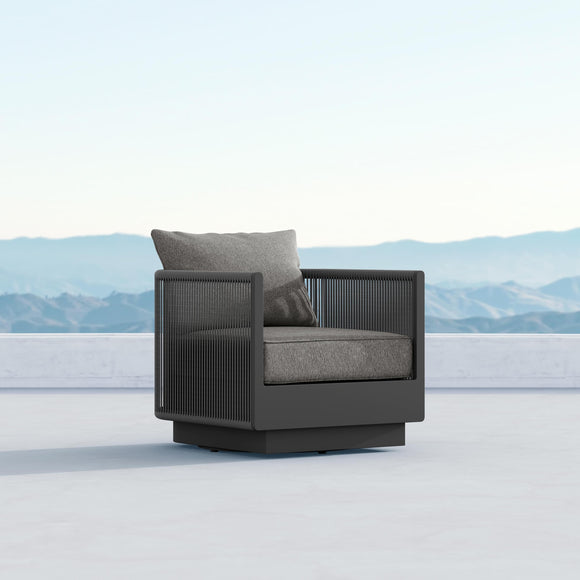 Perfect for any modern living space, the Porto Outdoor Swivel Club Chair from Azzurro Living offers a resort-worthy spot to relax. Crafted with durable all-weather rope and an aluminum base, this chair is the ideal statement piece for outdoor or indoor settings. The Solvita fabric cushions provide superior comfort and stain-resistance even when exposed to the harsh elements, allowing you to enjoy years of luxurious style and comfort.