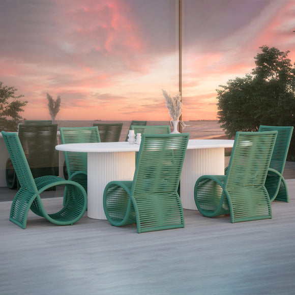 The Wave Dining Chair, a distinguished piece from Azzurro Living, draws inspiration from the human form with its elegant, biomorphic curves. Expertly crafted by artisans through precise welding, weaving, and finishing, these chairs deliver both luxurious comfort and remarkable durability. Designed for effortless cleaning and lasting appeal, this set of two adds a refined and refreshing presence to any dining space.