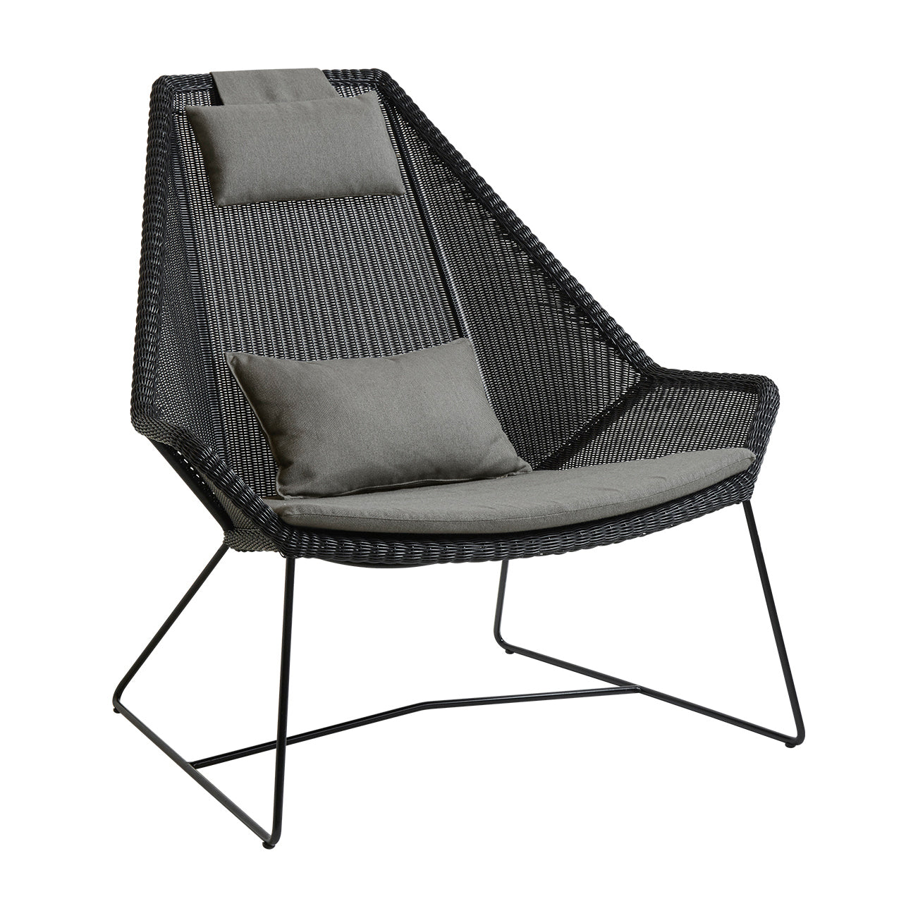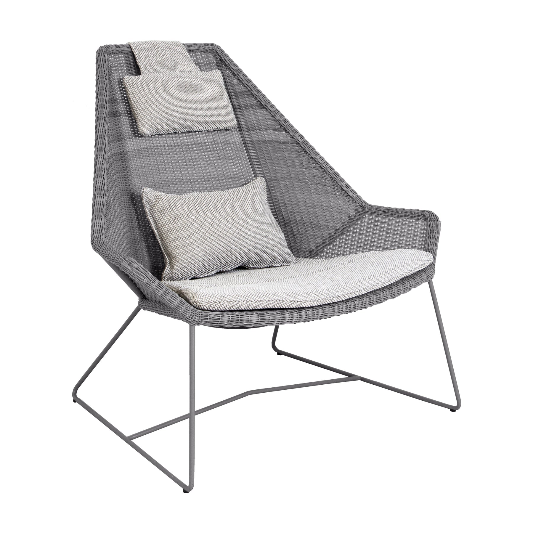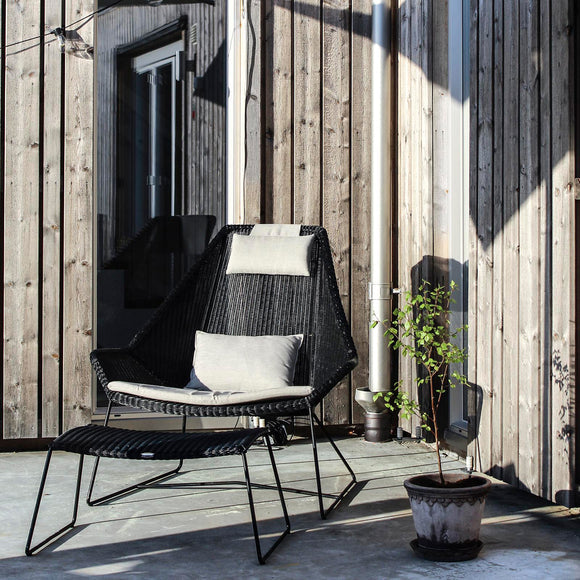 From the minds of designers Strand+Hvass the Breeze High back Chair from Cane-line brings comfortable, sculptural beauty to your favorite al fresco spaces. Demanding attention with its elegant lines and perfectly angled seat, the Breeze Chair is crafted from Cane-line Weave fiber and aluminum with cushions wrapped in Cane-line Nate or polypropylene. A perfectly streamlined design, the matching footstool can easily be placed under the seat of the chair, saving space when not in use.