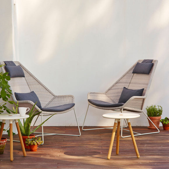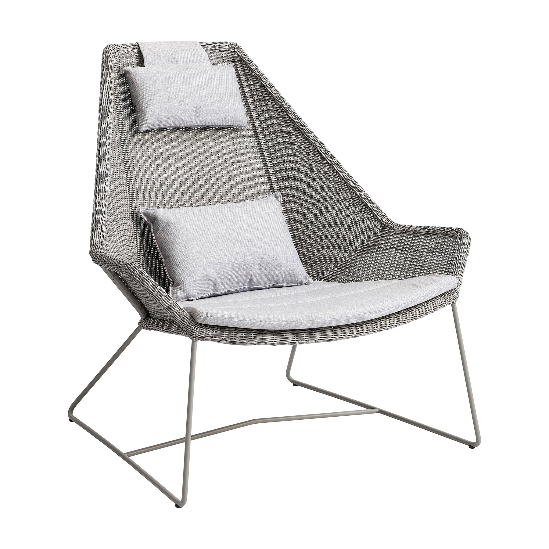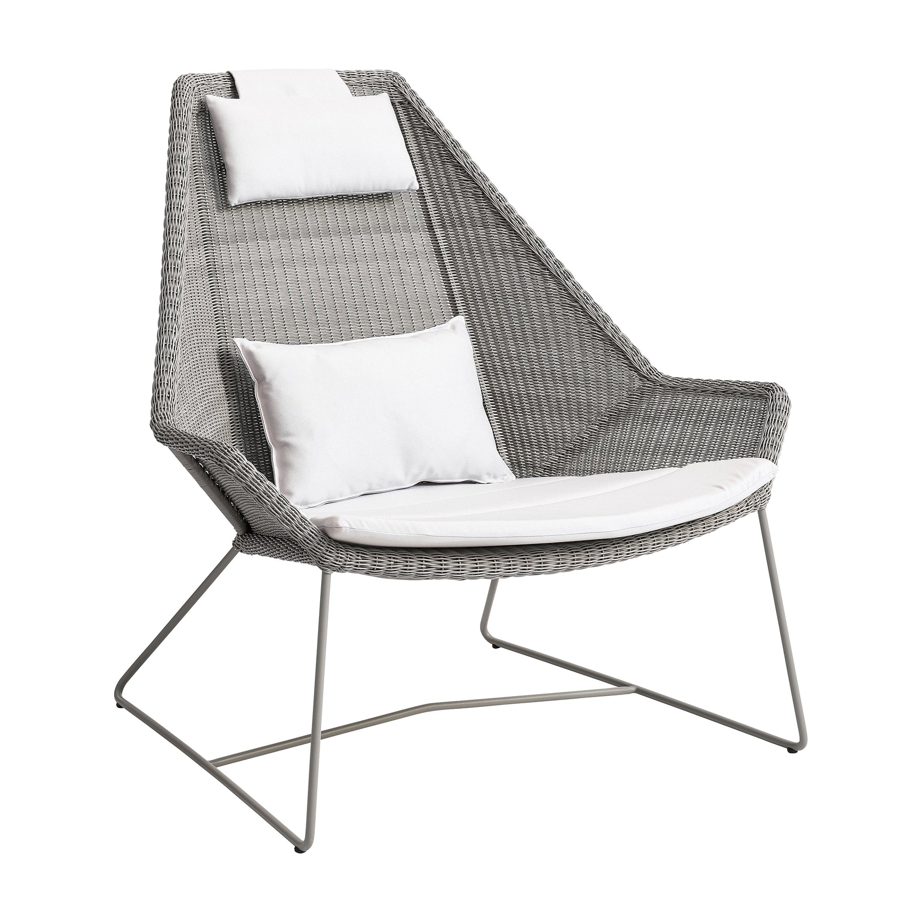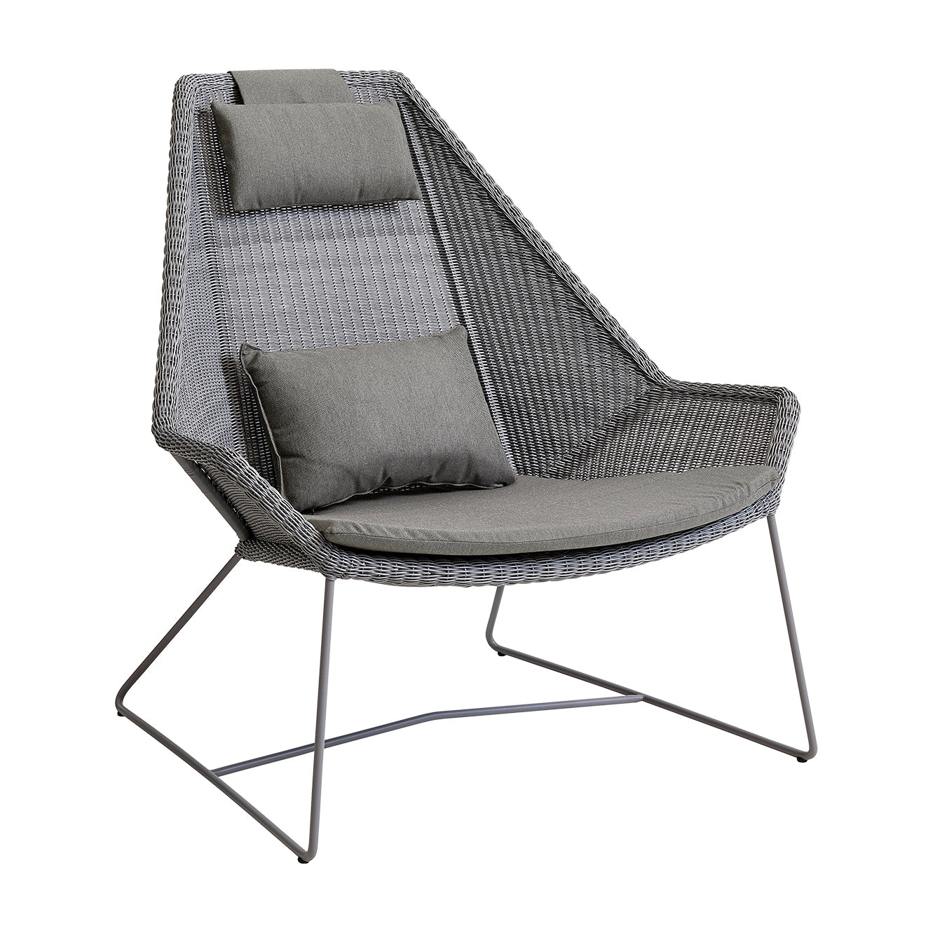 From the minds of designers Strand+Hvass the Breeze High back Chair from Cane-line brings comfortable, sculptural beauty to your favorite al fresco spaces. Demanding attention with its elegant lines and perfectly angled seat, the Breeze Chair is crafted from Cane-line Weave fiber and aluminum with cushions wrapped in Cane-line Nate or polypropylene. A perfectly streamlined design, the matching footstool can easily be placed under the seat of the chair, saving space when not in use.