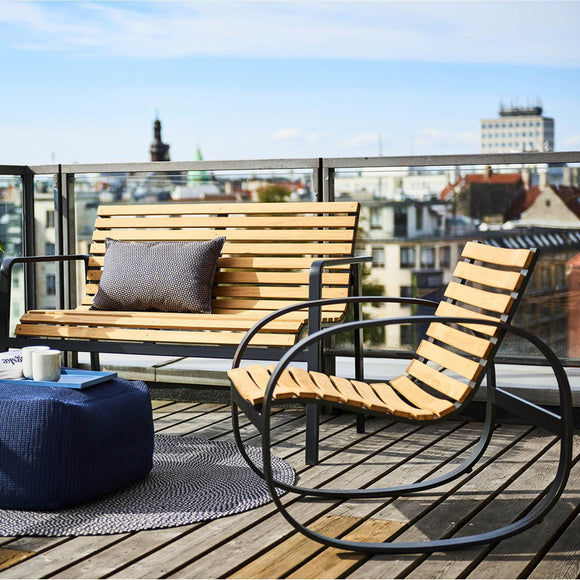 The Parc Outdoor Rocking Chair from Cane-line is designed to be an elegant addition to any outdoor space. Its ergonomic curves provide extraordinary comfort, while its sophisticated design and premium teak construction ensure a tasteful and durable design. Perfect for both large and small areas, Parc's versatility and superior construction make it an ideal choice for those seeking an upscale outdoor experience.
