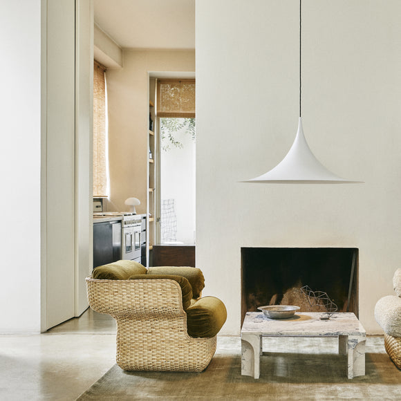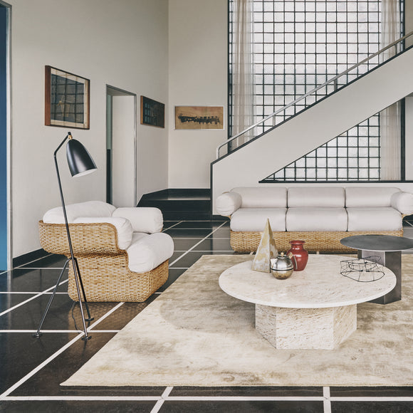 The Basket Lounge Chair from Gubi is a modern take on traditional rattan basket weaving. Its steel skeleton construction provides strength and stability, while the hand-woven rattan skin adds a touch of skilled craftsmanship. Topped with plush cushions wrapped in removable covers, this lounge chair adds a cozy, retro touch to any interior.