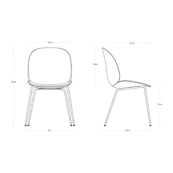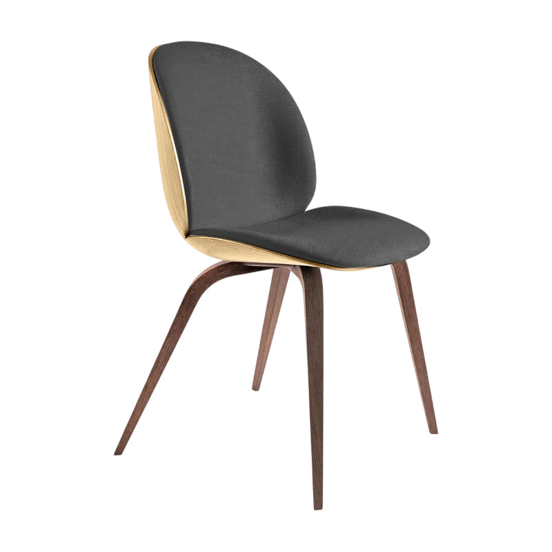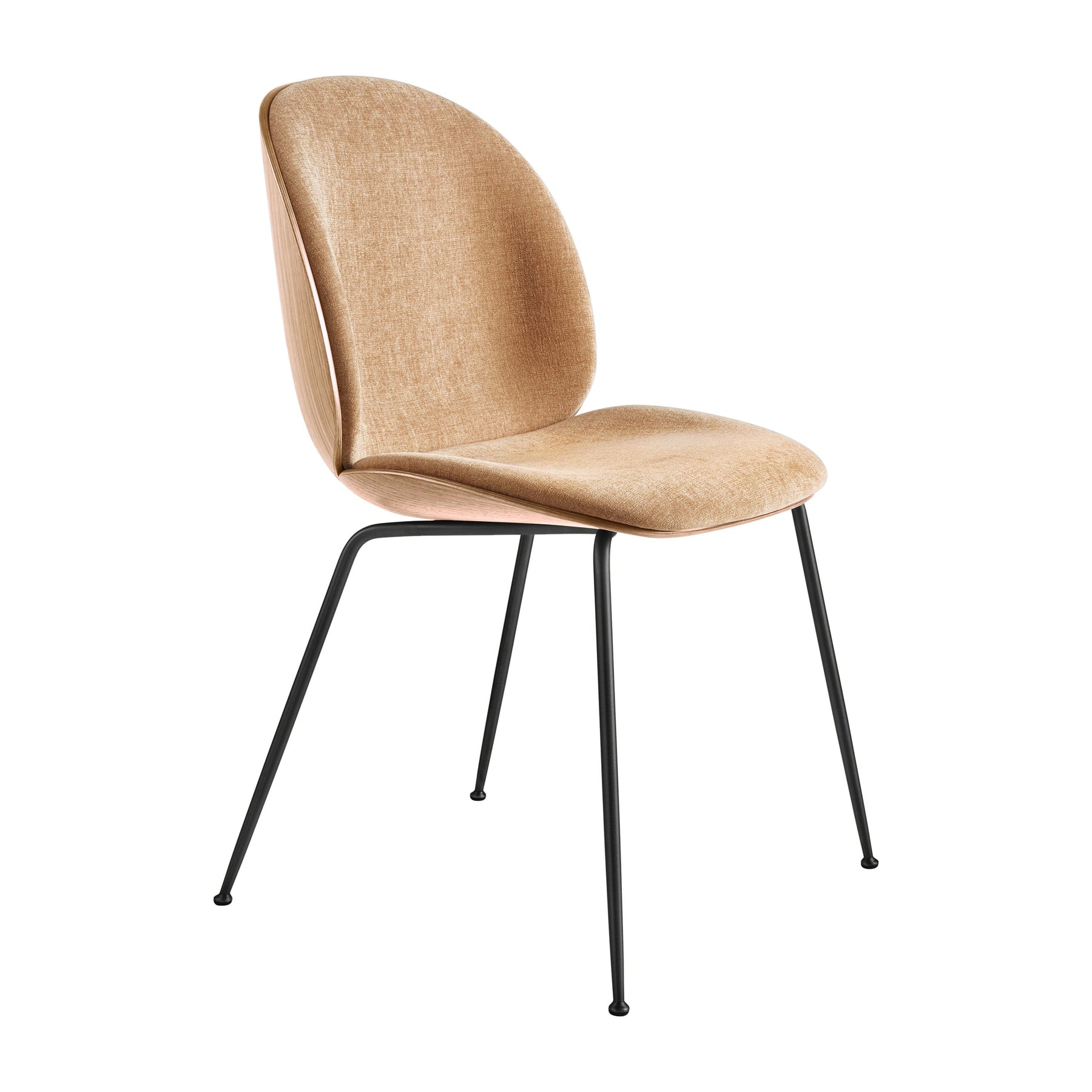 Elevate your dining experience with the Beetle 3D Veneer Front Upholstered Dining Chair - Metal Base from Gubi. Inspired by the insect world, this chair offers sculptural style and ample comfort for hours of use. The 3D veneer front and metal base provide durability and comfort, while a variety of upholstery options allow you to make it uniquely yours.