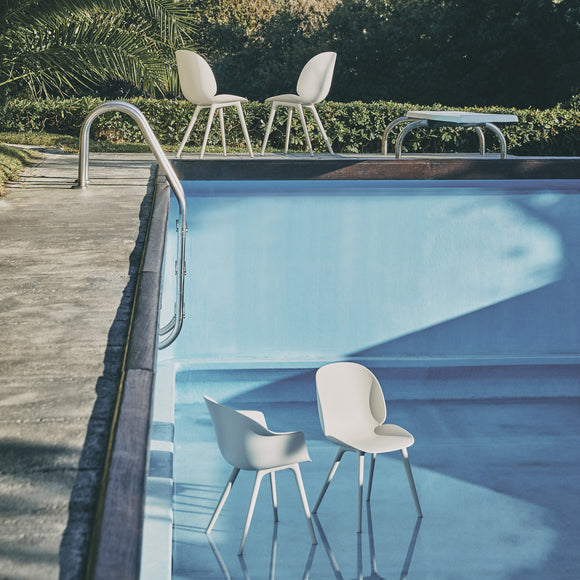 The Beetle Outdoor Dining Chair, designed by GamFratesi, boasts a sleek and sturdy form inspired by the graceful contours of its namesake insect. With its flexible yet rigid design, it offers maximum comfort for extended use. Lightweight and UV-resistant, this chair is a perfect addition to any indoor or outdoor setting.