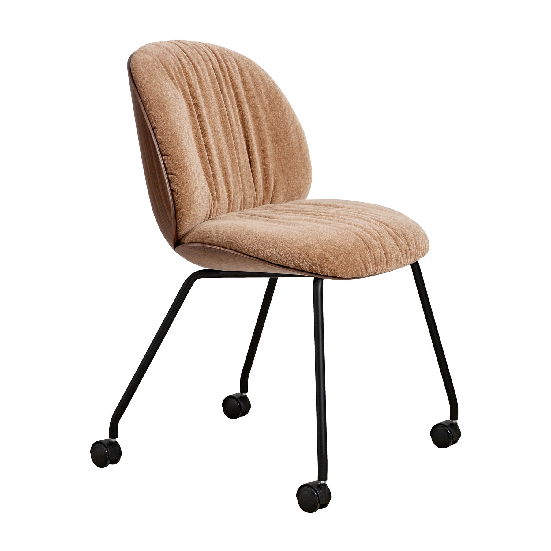Bringing expressive comfort to the modern workspace, the Beetle Soft Veneer Front Upholstered Meeting Chair from Gubi is a tactile and functional update to an iconic design. This version of GamFratesi's beloved chair features a beautiful, curved wood veneer back that contrasts with a plush, front-upholstered seat. The new 'Soft' upholstery is more generous, with a clean, piping-free finish that emphasizes its relaxed feel. It’s a sophisticated and comfortable choice for the contemporary office.