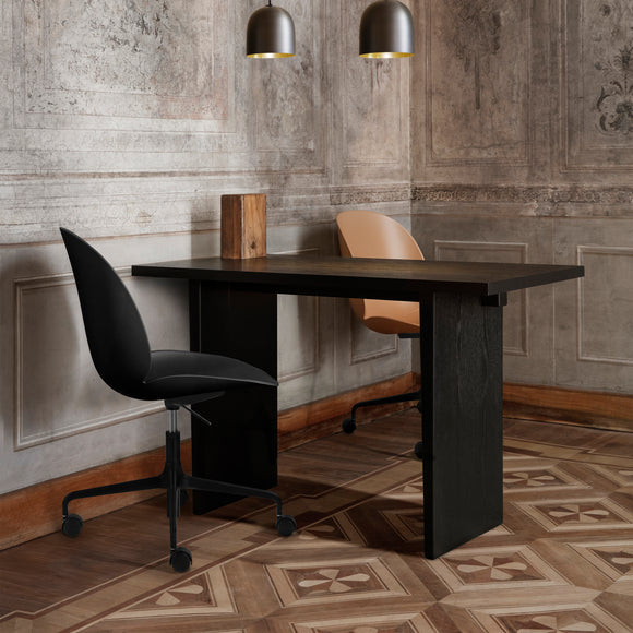 Elevate your office space or conference room with the Beetle Swivel Conference Chair from Gubi. Its sleek swivel base offers both functionality and sophisticated design, while the comfortable, nature-inspired seat ensures long meeting sessions remain productive. With an adjustable height and castor base, this chair can be personalized to fit any workplace or meeting room.