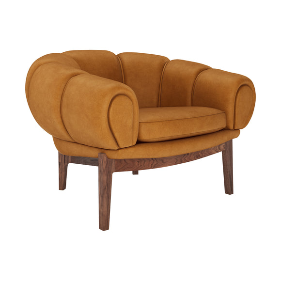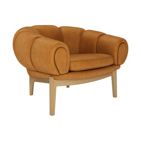 The Croissant Lounge from Gubi is a playfully shaped chair imagined by midcentury Danish architect and designer Illum Wikkelsø. This elegant and modern lounge chair can stand alone as a powerful statement piece or in a pair if you prefer a ‘fireside chat’ vignette. The complex curves of the ‘croissant’ come to life through meticulous hand-stitching making this piece an elevated addition to any space in your home.