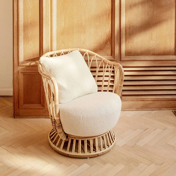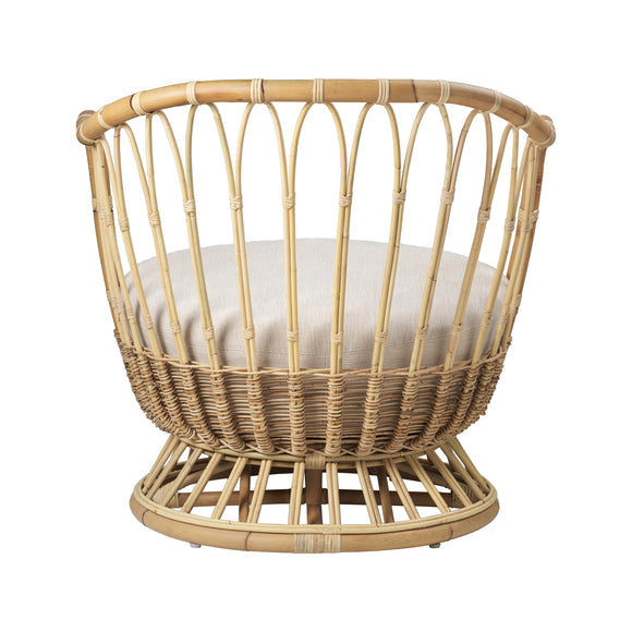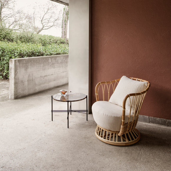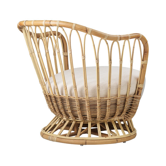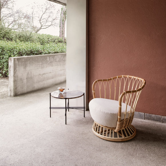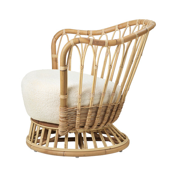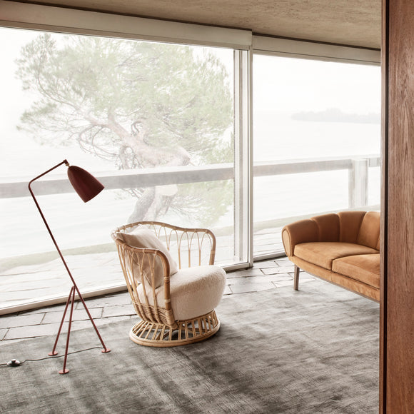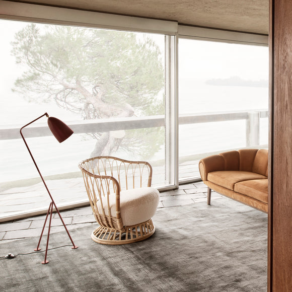 The Grace Lounge Chair from Gubi is inspired by the soft curves and materiality found in nature. The design of the soft upholstered seat is offset, as the top is slightly larger than the base, offering noteworthy aesthetic and lasting appeal. The backrest is comprised of long loops of hand-molded rattan that allow you to sit back and enjoy the beauty this chair has to offer.