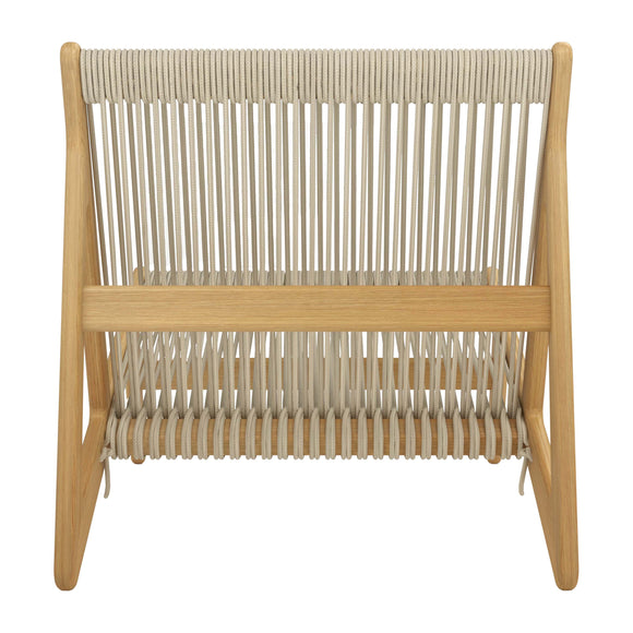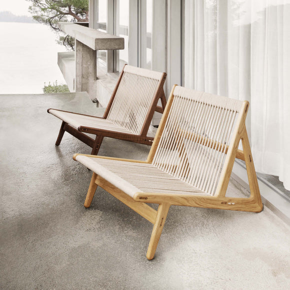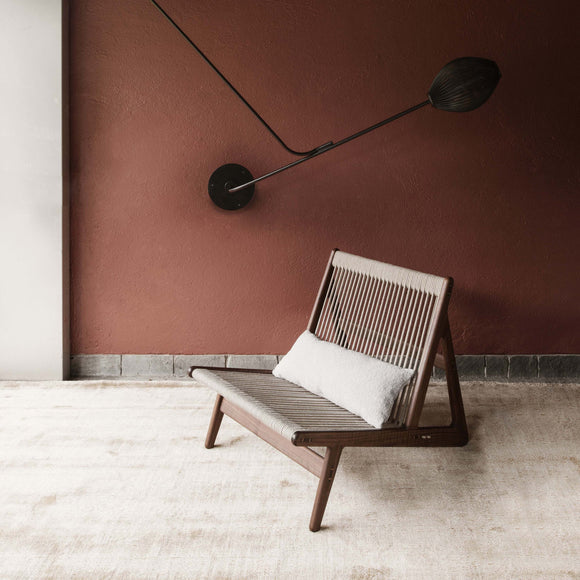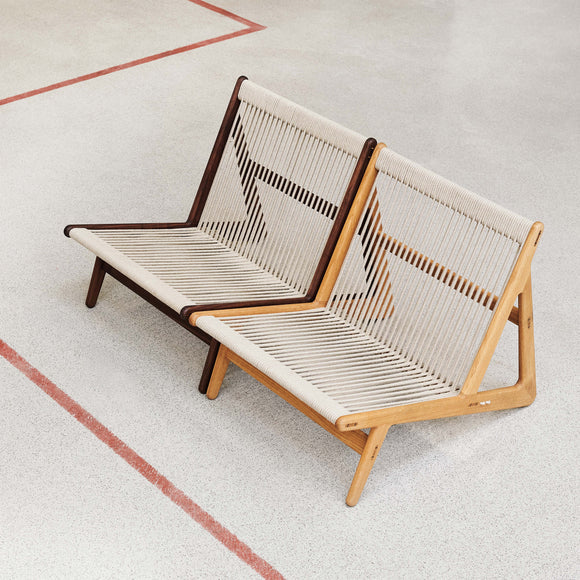 Created by young Danish designer Mathias Steen Rasmussen, the MR01 Initial Chair from Gubi is a strikingly modern design thoughtfully crafted with the utmost detail. This honest design is the result of Rasmussen’s process of thinking with his hands as he draws sketches and builds prototypes. This modern lounge chair is low-slung with a gentle incline that is designed to give the sitter a sense of floating. Originally designed for Rasmussen to use in his own home to use for meditation, this chair is handcrafted using ropes and solid wood to create a lightness and transparency to the design.