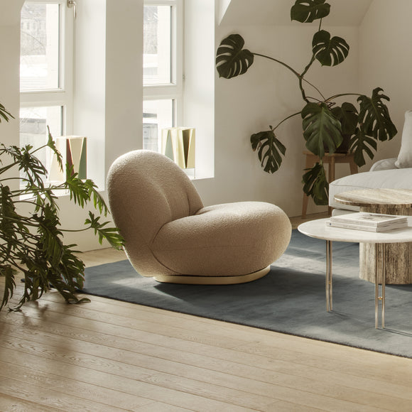 Originally designed in 1975 by legendary French designer Pierre Paulin, the Pacha Lounge Chair from Gubi brings refined elegance to playful, rounded forms. As stylish as it is comfortable, the Pacha Lounge Chair gently cradles you as you relax in its perfectly proportioned shape. Set a few inches off the ground on a swivel base, the low-profile, compact seating design, creates a relaxing and welcoming lounge space filled with honest, functional design.