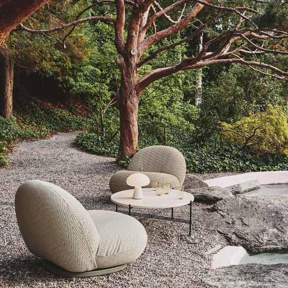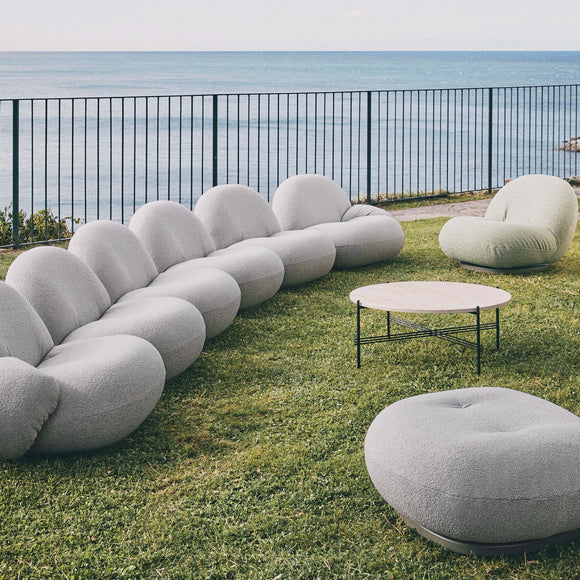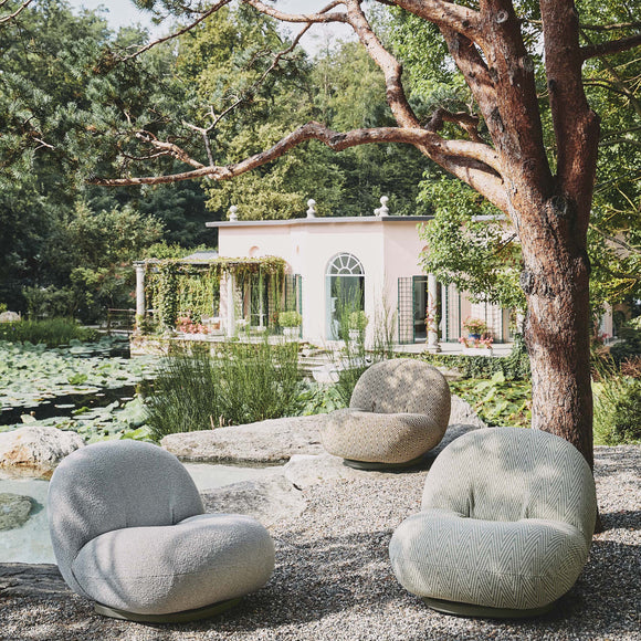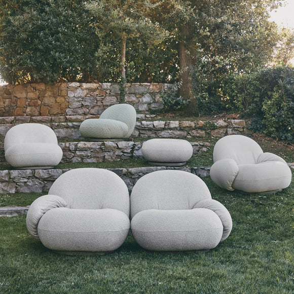 The widely beloved Pacha Lounge Chair was joined by a number of Paulin’s other designs, including a version with armrests, the Pacha Ottoman and the Pacha Sofa – available in modular configurations. All have now been revisited and reinvented for this outdoor collection. With a small footprint, the Pacha Outdoor Collection can be clustered in different combinations to suit the scale of the outdoor space as well as the style and atmosphere of the setting.