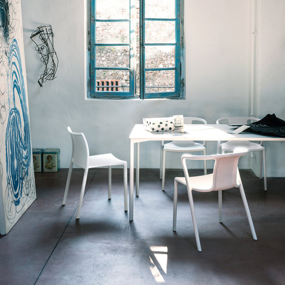 Welcome guests to your dining space with the Air Outdoor Stacking Chair (Set of 4) from Magis. This stackable dining chair offers streamlined sophistication, making it perfect for both indoor and outdoor occasions. Crafted from durable, yet lightweight polypropylene, this set of chairs is designed for maximum practicality, convenience, and easy cleaning. Stackable for easy storage, this chair is ready to be used to its fullest potential.