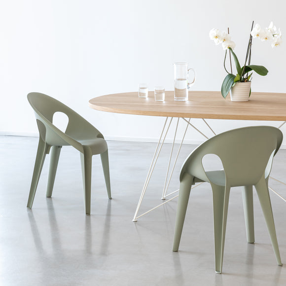 Elevate your indoor and outdoor dining spaces with the Bell Outdoor Stacking Chair (Set of 4) from Magis. Crafted from recycled polypropylene for an eco-friendly seat, these stackable chairs boast a near-closed material cycle and a unique curved silhouette that ensures both structural strength and comfort. Enjoy lounging in style with this elegant, sustainable design.