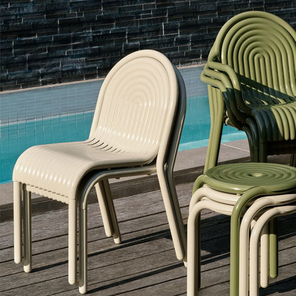 Experience an art deco-inspired masterpiece with the Groove Dining Side Chair from Tom Dixon. Crafted from premium aluminum using cutting-edge techniques, it boasts raised ridges and a powder-coated finish for enhanced durability. Designed for both indoor and outdoor use, this chair is solvent and VOC-free and stacks easily for storage. Part of Tom Dixon's exclusive outdoor collection.