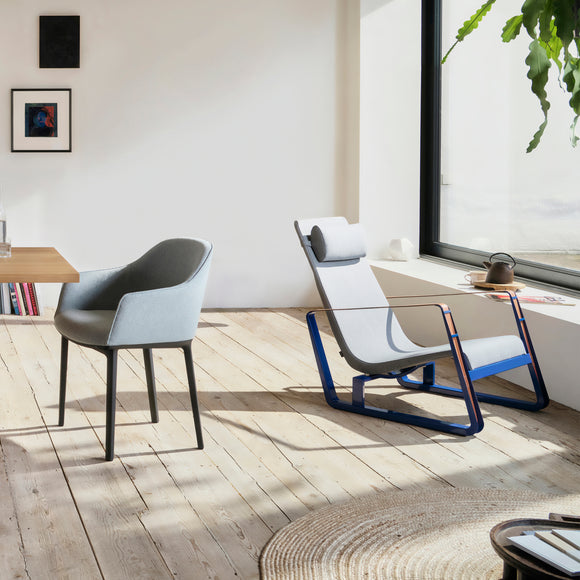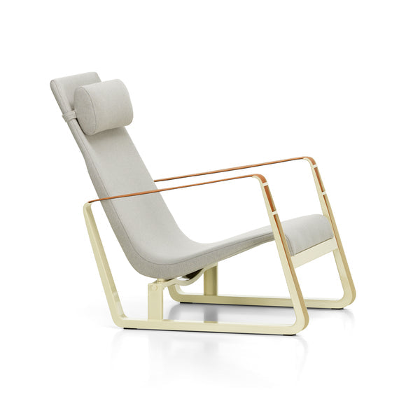 Discover the timeless artistry of the Cite Lounge Chair by Vitra. With its unique geometric metal frame and naturally reclined position, this chair offers a sleek and comfortable seating experience. Its luxurious cotton fill material and soft cushion provide perfect support for your head, while the sturdy arms and legs create a chic and elegant design.