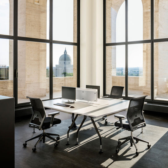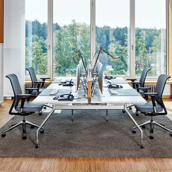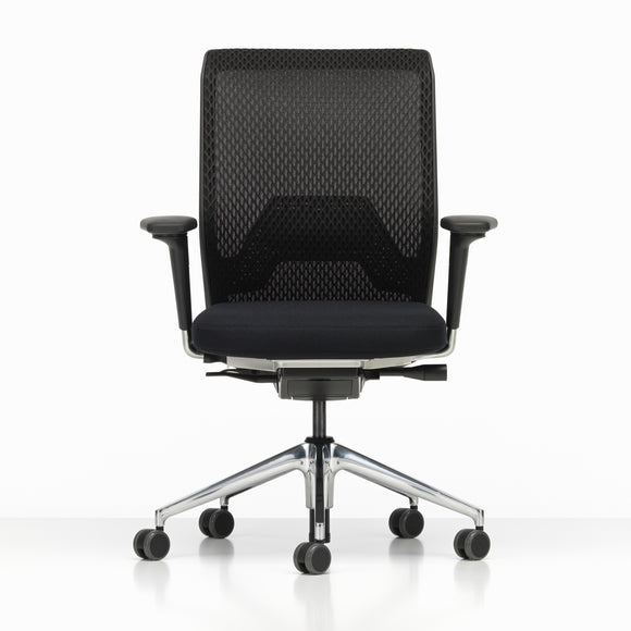 Create a comfortable and productive work space with the ID Mesh Office Chair from Vitra. Its knitted "Diamond Mesh" design allows for proper air circulation, keeping you cool even in hot summers. With customizable features such as lumbar support, backrest counterforce and adjustable seat and armrest heights, this chair is perfect for conference rooms or long hours at the office.