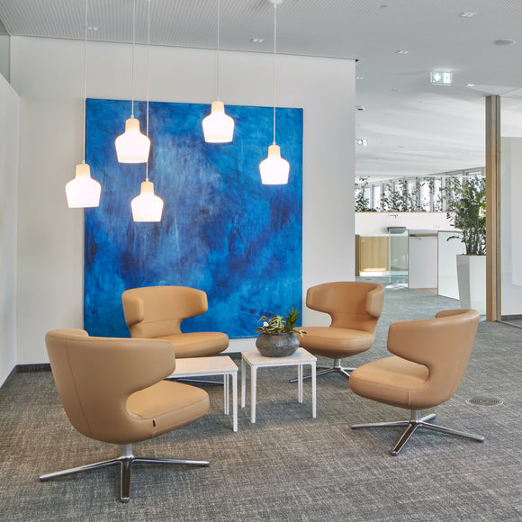 Petit Repos, a member of the Repos chair family by Antonio Citterio, combines outstanding comfort with compact dimensions: the flexible backrest is paired with lush upholstery to provide a relaxing seating experience in all types of lobbies or lounges. Petit Repos comes with covers in a choice of leather or fabric.