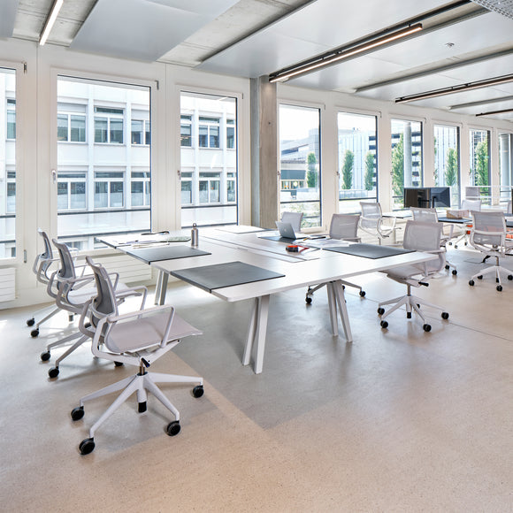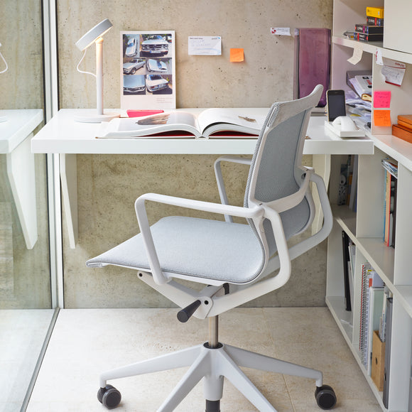 Say goodbye to discomfort and hello to non-stop productivity with the Physix Office Chair from Vitra. Designed with a flexible polymer frame and supportive sling seat, this sleek chair adapts to your body for all-day comfort. Plus, the height-adjustable swivel base ensures stability while you work, while the mesh back ensures proper air flow while seated.