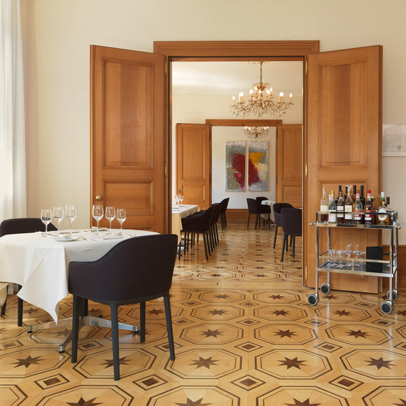 The Softshell Chair by Ronan and Erwan Bouroullec will surprise users with its exceptional comfort: flexible ribs are concealed in the back shell and adapt to the user, providing freedom of movement. The four-legged version of the elegant, lounge-style chair can be combined with a wide selection of dining tables.