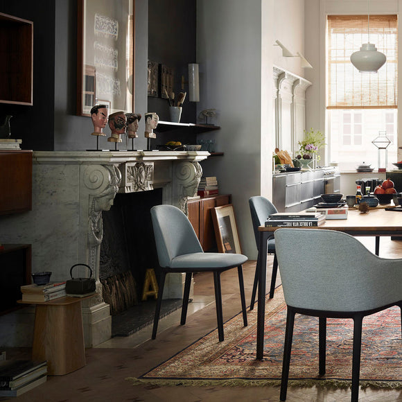 The Softshell Side Chair, whose gentle contours are defined by its soft upholstery, provides exceptionally comfortable seating and compact dimensions: vertical ribs concealed in the upper part of the backrest offer flexibility and considerable freedom of movement – and exceptional comfort even over prolonged periods of sitting. The Softshell Side Chair has a four-legged base made of robust plastic that accentuates the understated elegance of the design. Similar in appearance, the Softshell Side Chair and Softshell Chair can be perfectly combined at the same table. Both chairs are available in the same selection of versatile fabric or leather covers in a wide choice of colors.