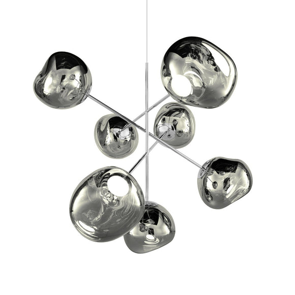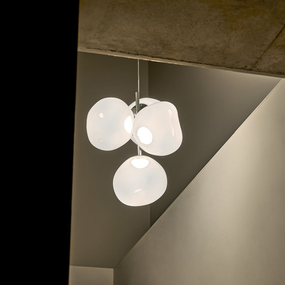 A swarm, huddle, herd, cluster or bunch; there are a thousand ways of configuring the lamps to produce an extraordinary lighting arrangement. Fitted with the new LED module, the Melt Chandeliers are the attempt to rethink the contemporary chandelier.