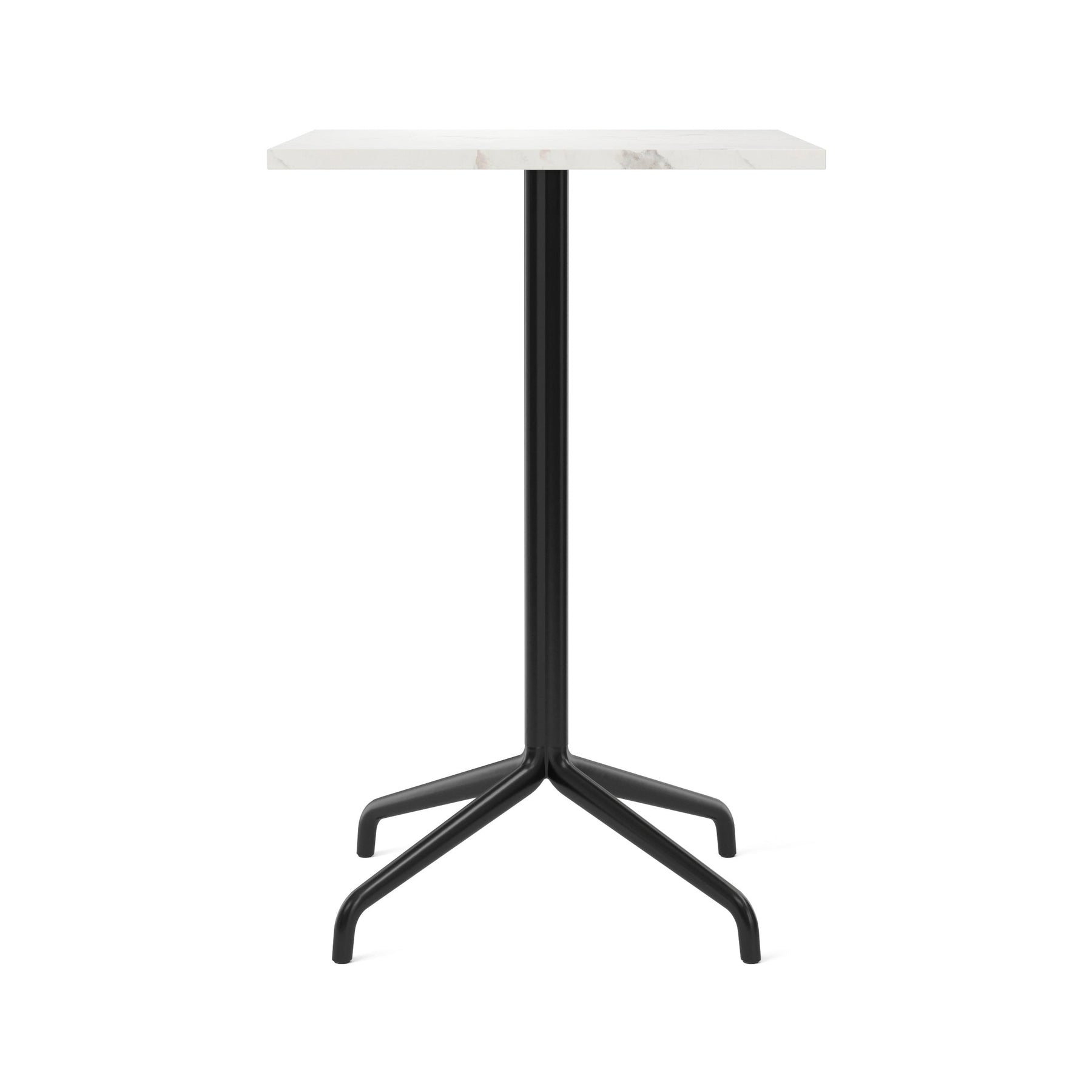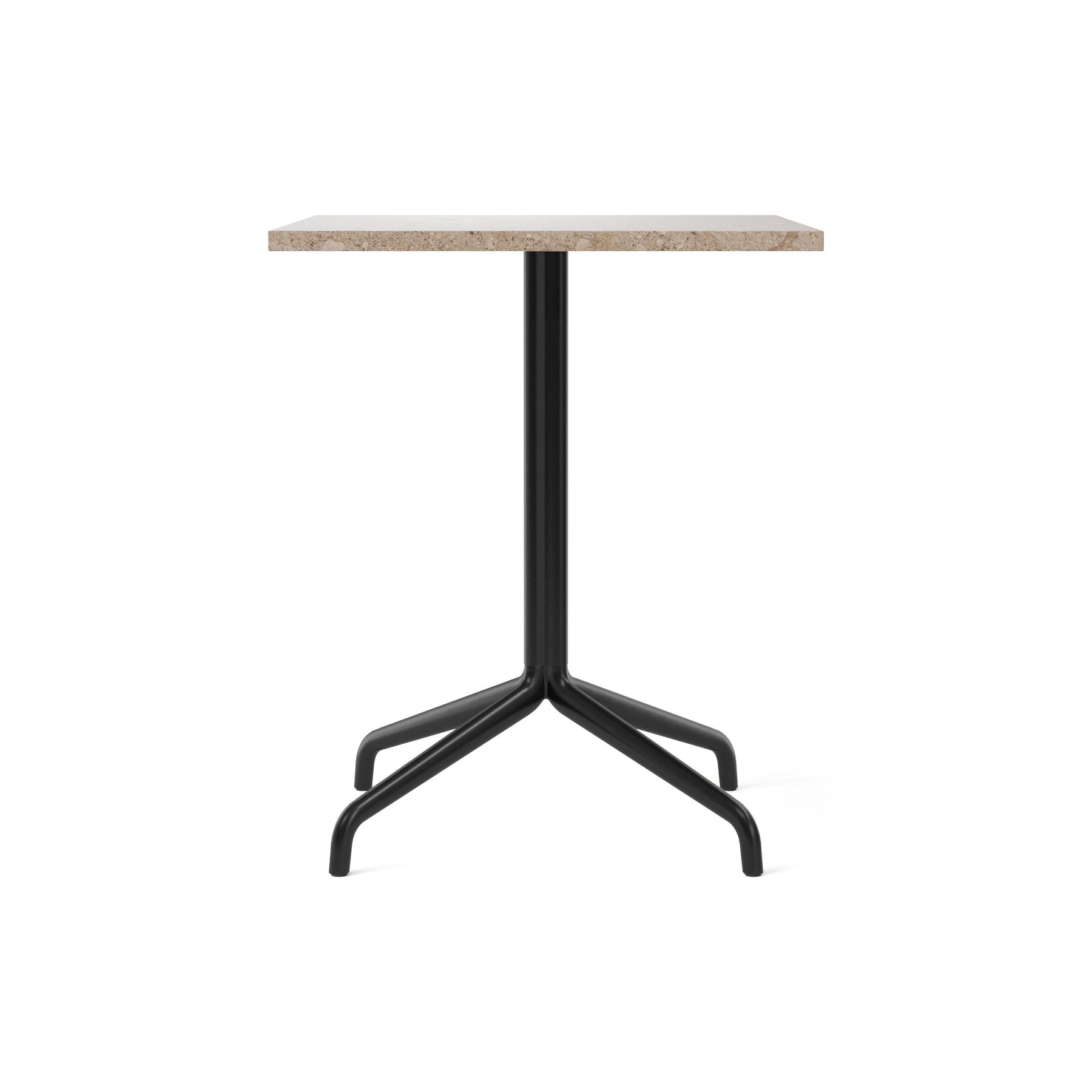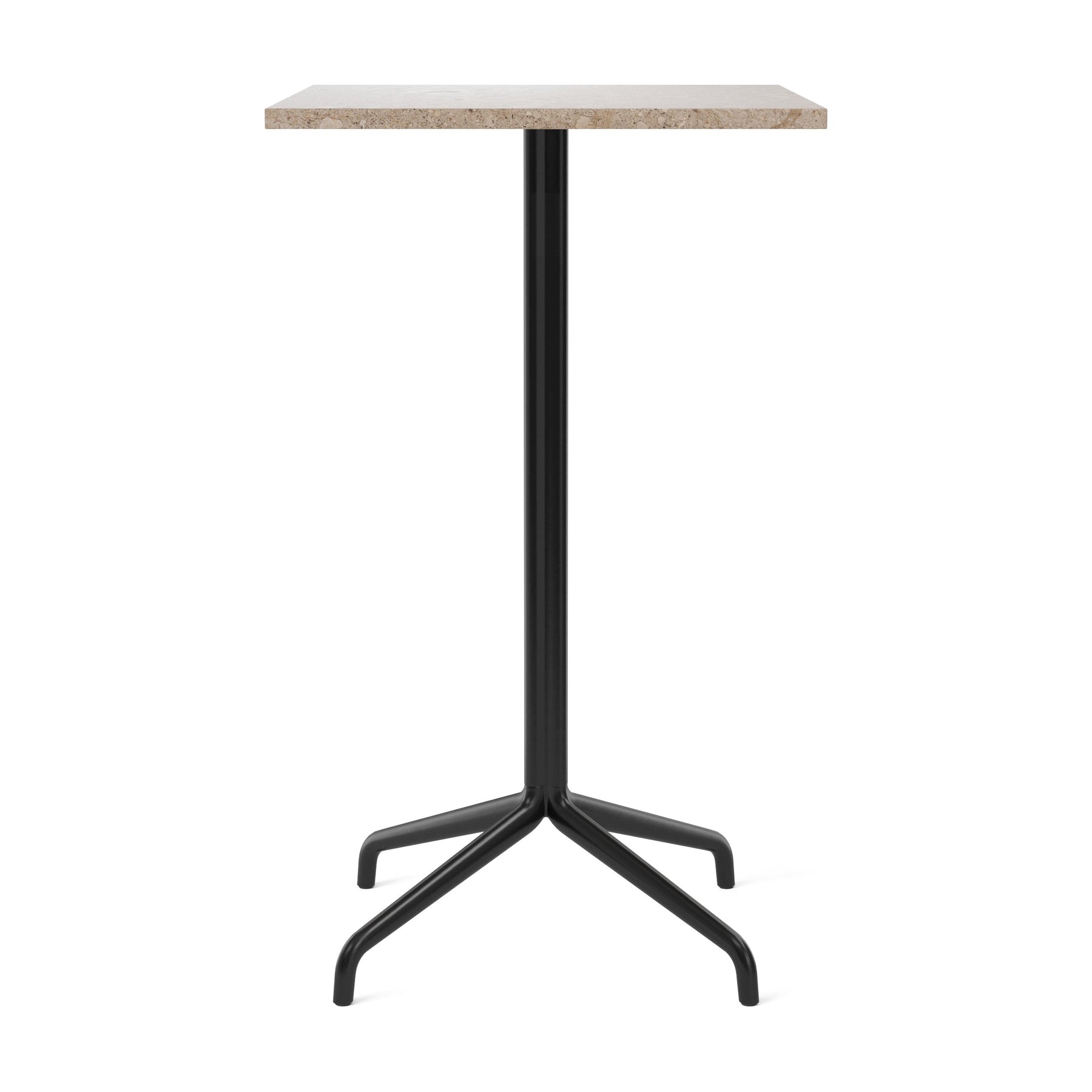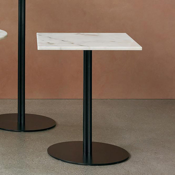 Each can be crafted in charcoal linoleum, black oak veneer, or off white marble to suit your space and design preferences. The clover-shaped column base is constructed in steel and aluminum in a black powder coated finish, with dining, counter and bar heights to fit numerous needs in homes, workplaces, cafés, lobbies – the possibilities are endless. Mix and match bases and tabletops to create your ideal pairing.