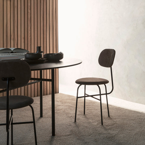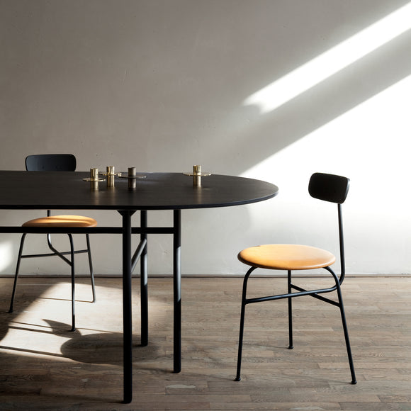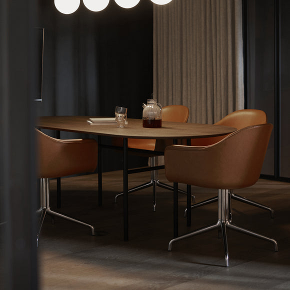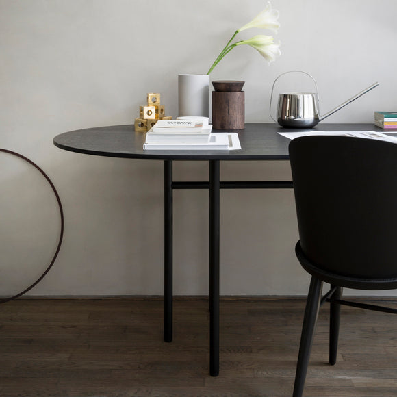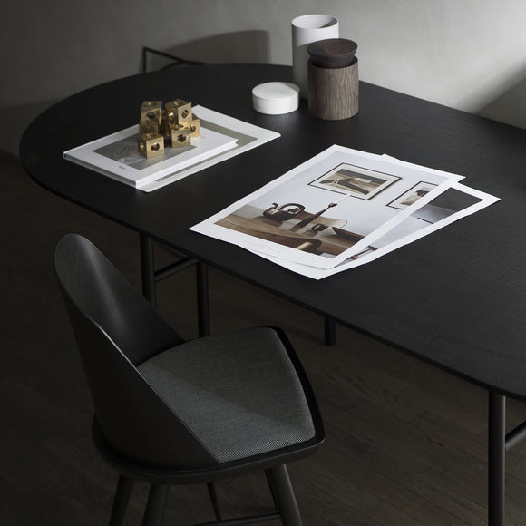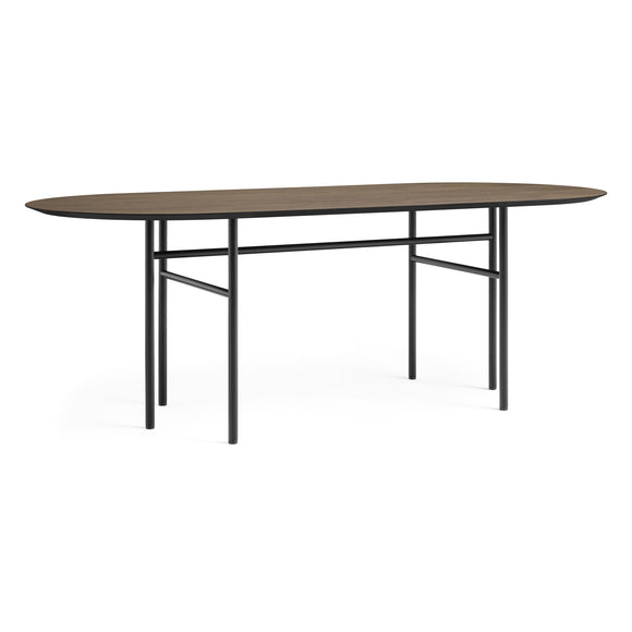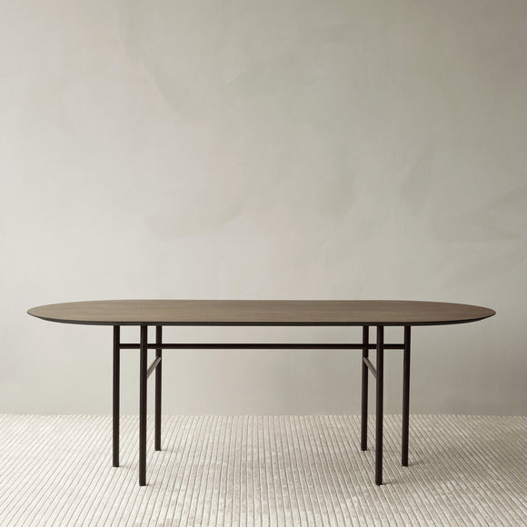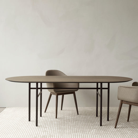 Originally designed for Bjarne Hansen - the creative director and founder at Audo Copenhagen, the Snaregade Oval Table by Menu Design now Audo Copenhagen is the result of years of testing and use in both commercial and residential applications. Suitable as a spacious dining table or work station, this versatile design is crafted from stained oak veneer sitting atop a powder-coated steel frame. Despite being a fairly uncomplicated design, this table is a genuine eye-catcher due to the uniquely designed leg construction in combination with a clean and sophisticated table surface.